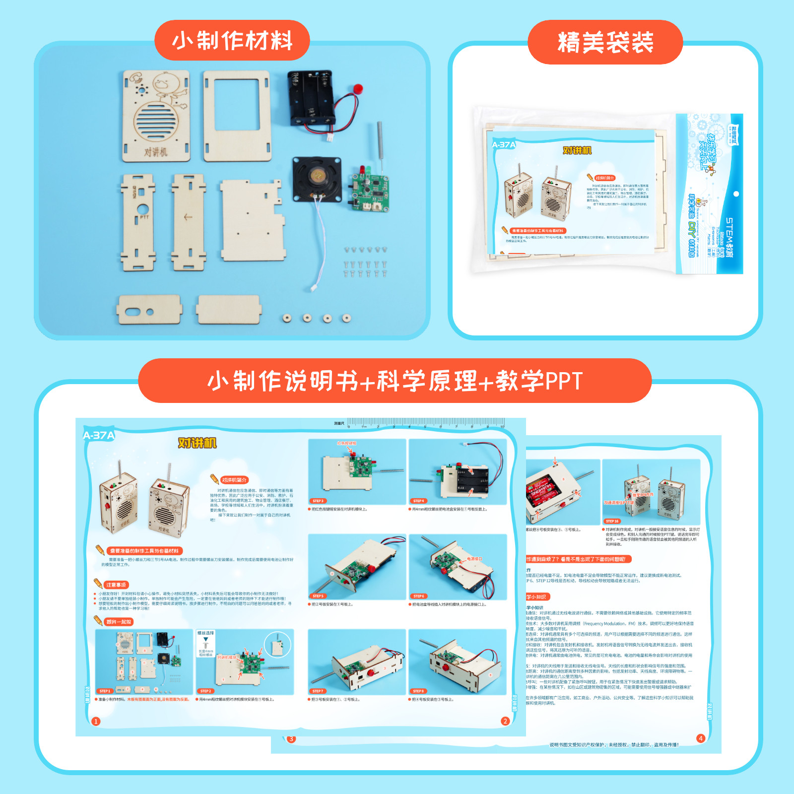 科学实验diy无线对讲机 儿童手工科技制作小发明亲子互动材料包