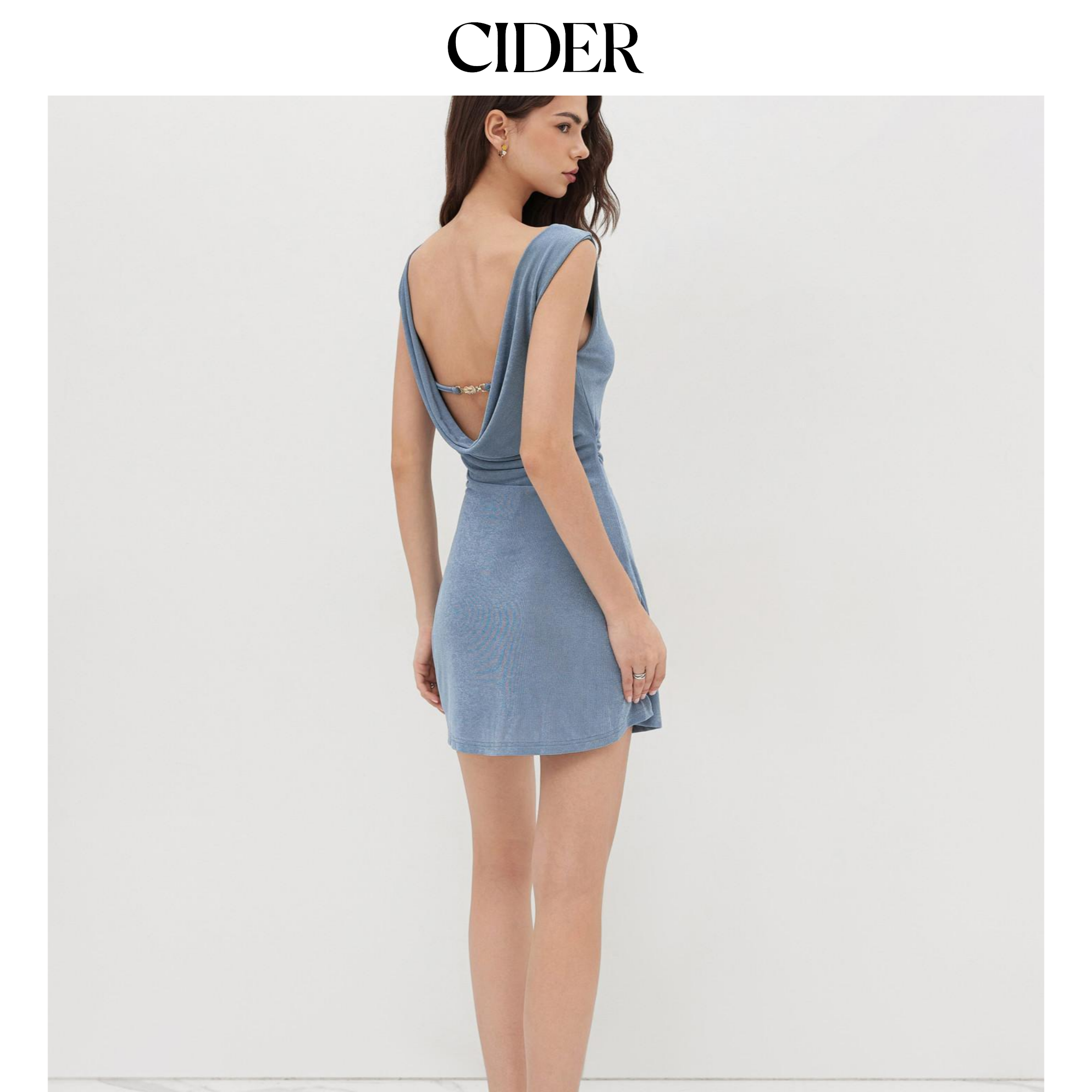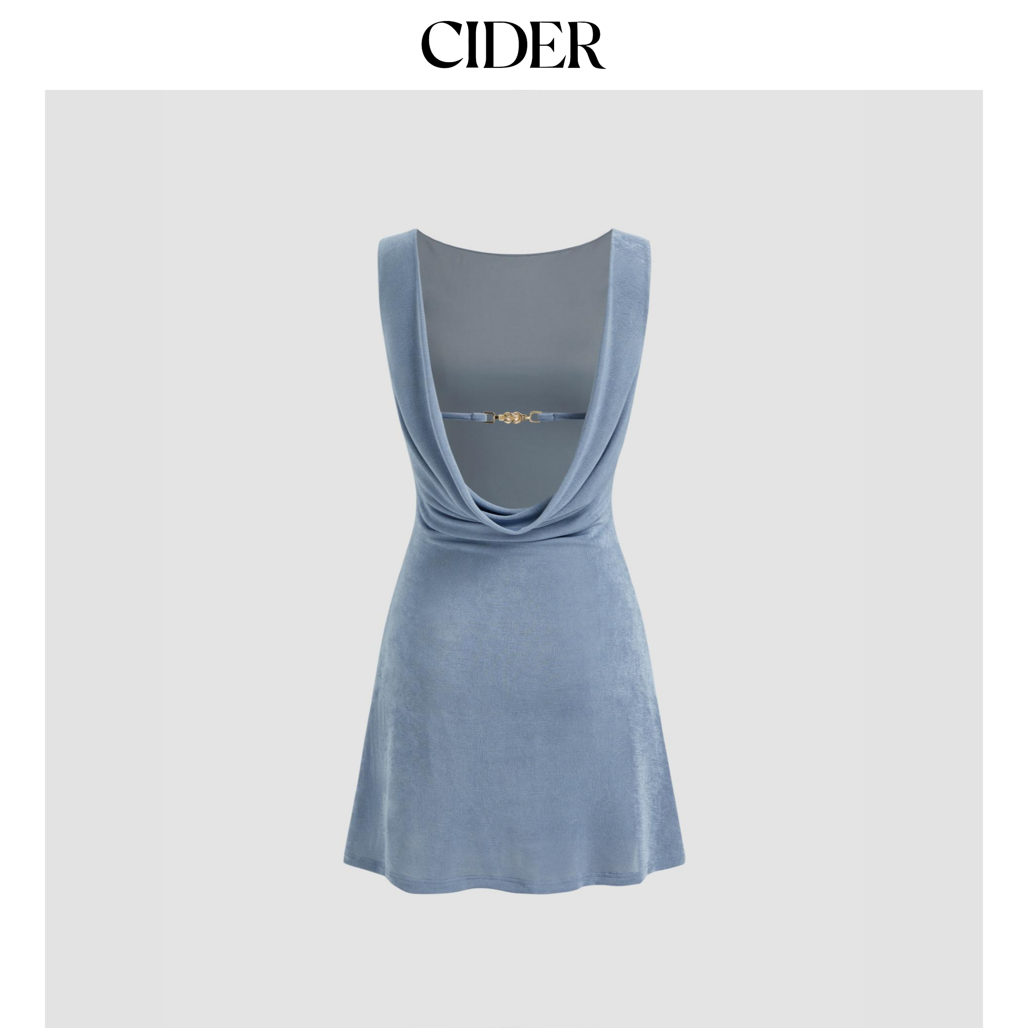 CIDER 船领露背链条细节褶皱设计感连衣裙女装114388775