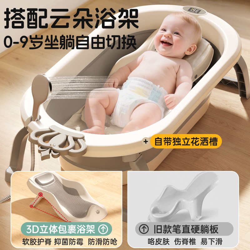 IUU婴儿洗澡盆宝宝浴盆大号浴桶折叠坐躺托浴架家用新生儿童用品