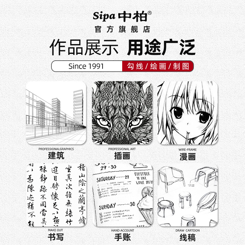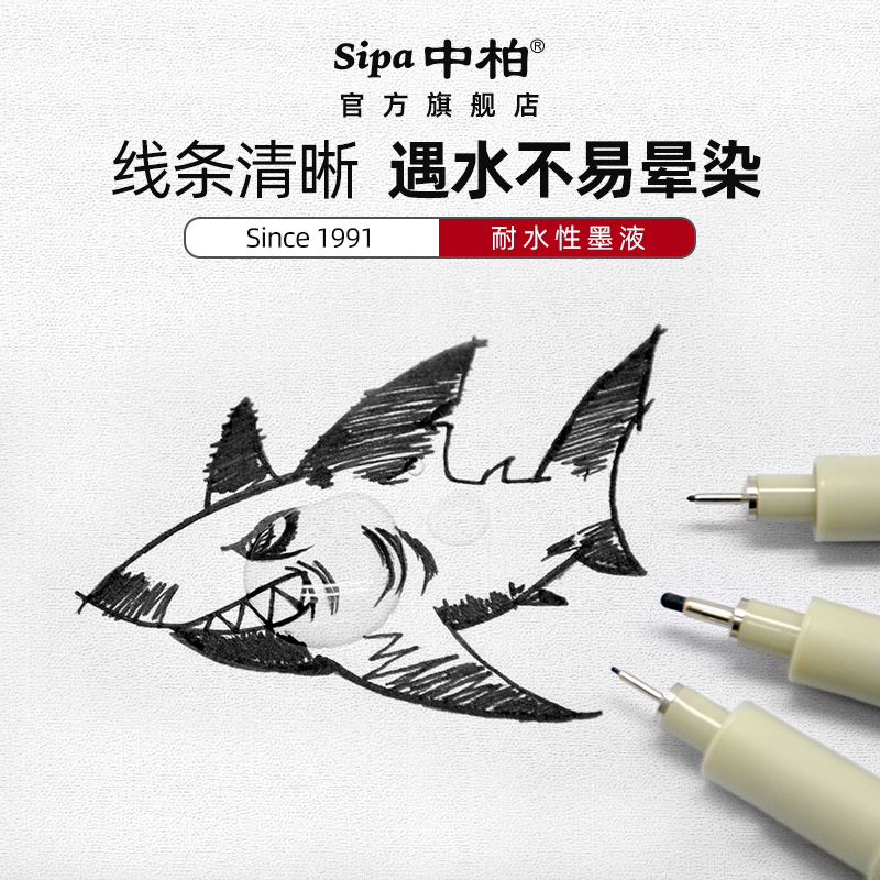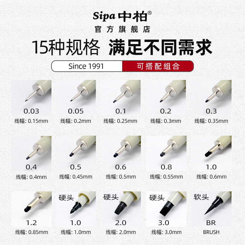 中柏针管笔美术专用防水勾线笔不晕染专业漫画描边美术专用儿童动漫绘画笔描边设计绘图速写墨线br软头勾线笔