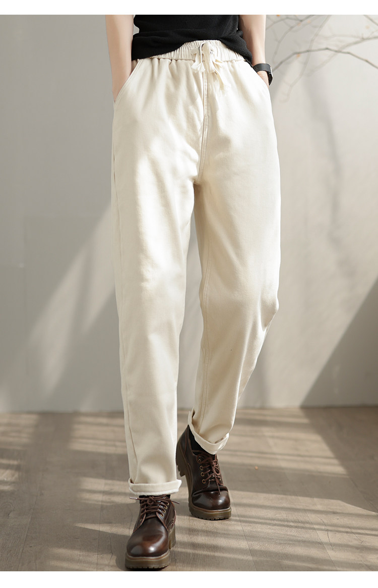 魔悦加绒糯米裤2025秋冬新款口袋显瘦休闲裤