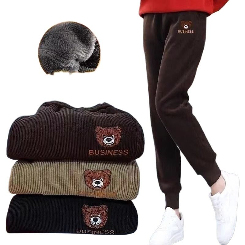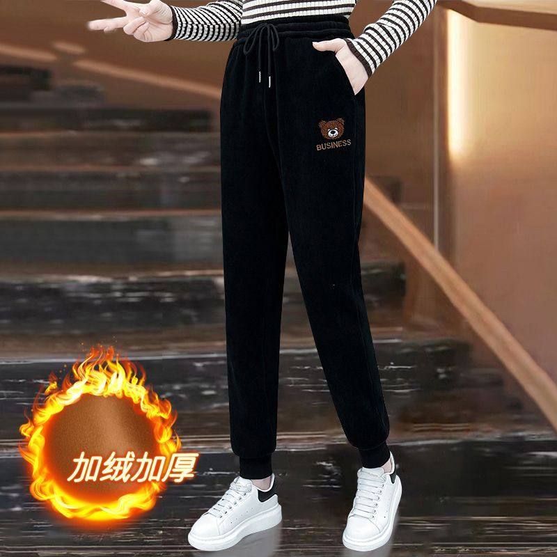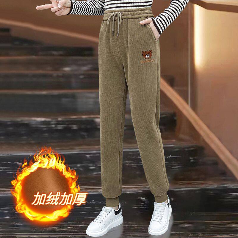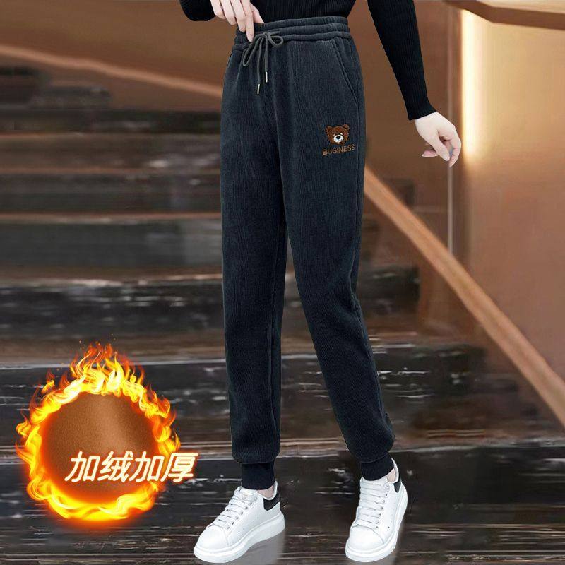 欧棉绒加绒加厚哈伦裤女秋冬季新款妈妈高腰休闲保暖束脚卫裤白色