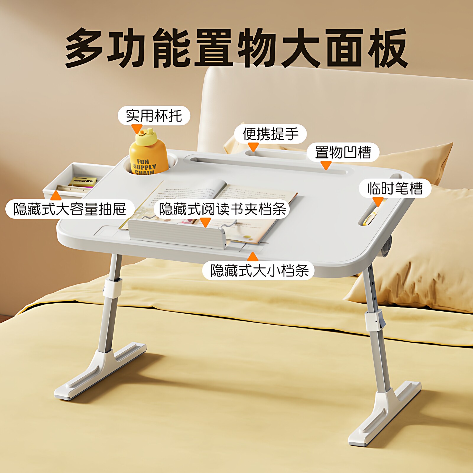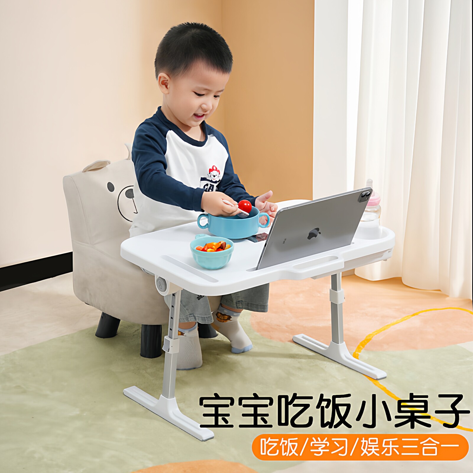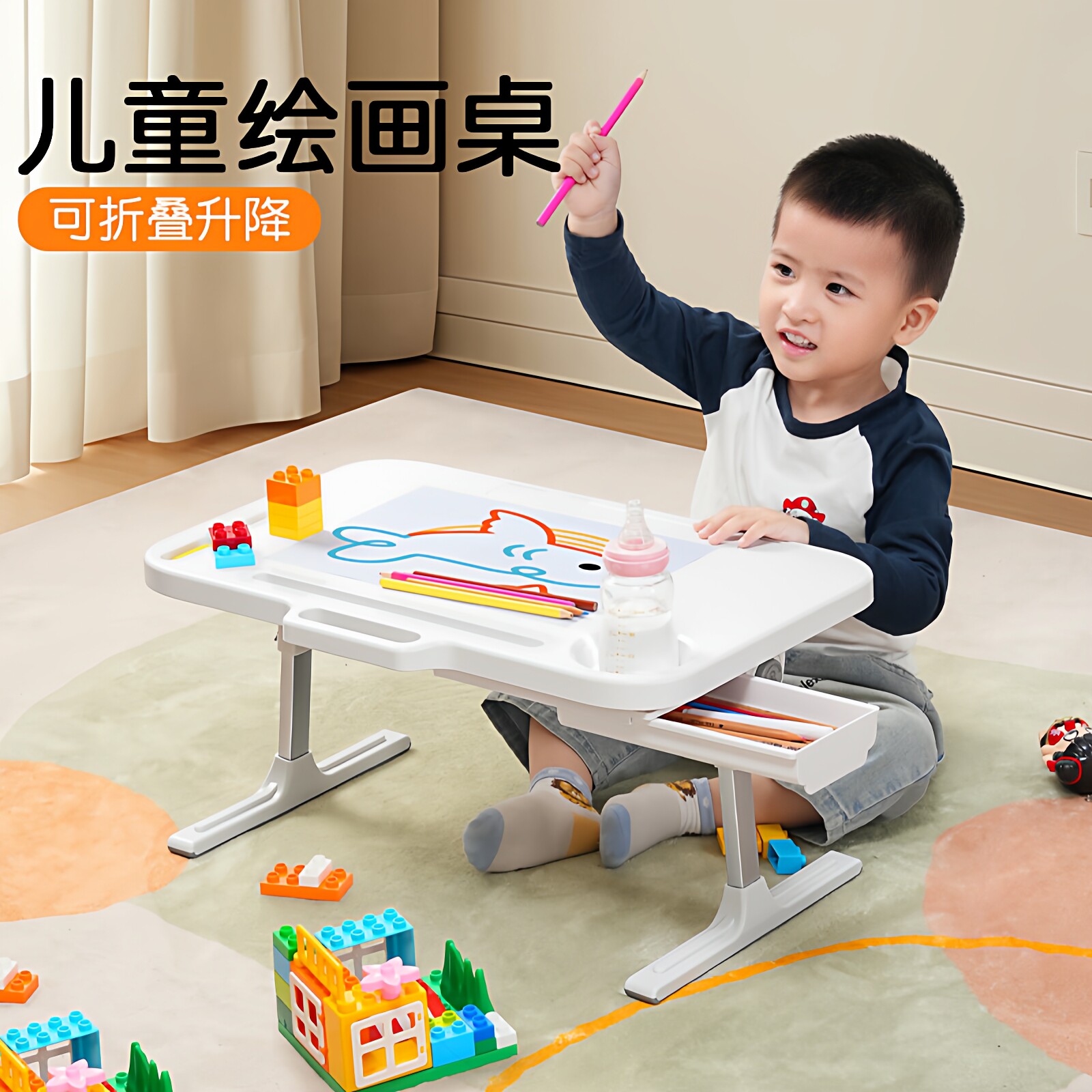 宝宝阅读架折叠升降调节迷你可移动学习绘画多功能小饭桌子床上白