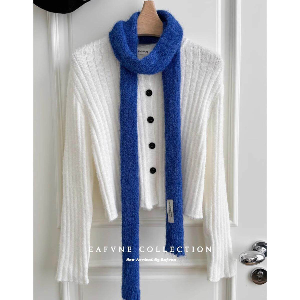 韩国小众设计 微卷边马海毛细围巾辣妹穿搭时髦长条百搭围脖细窄