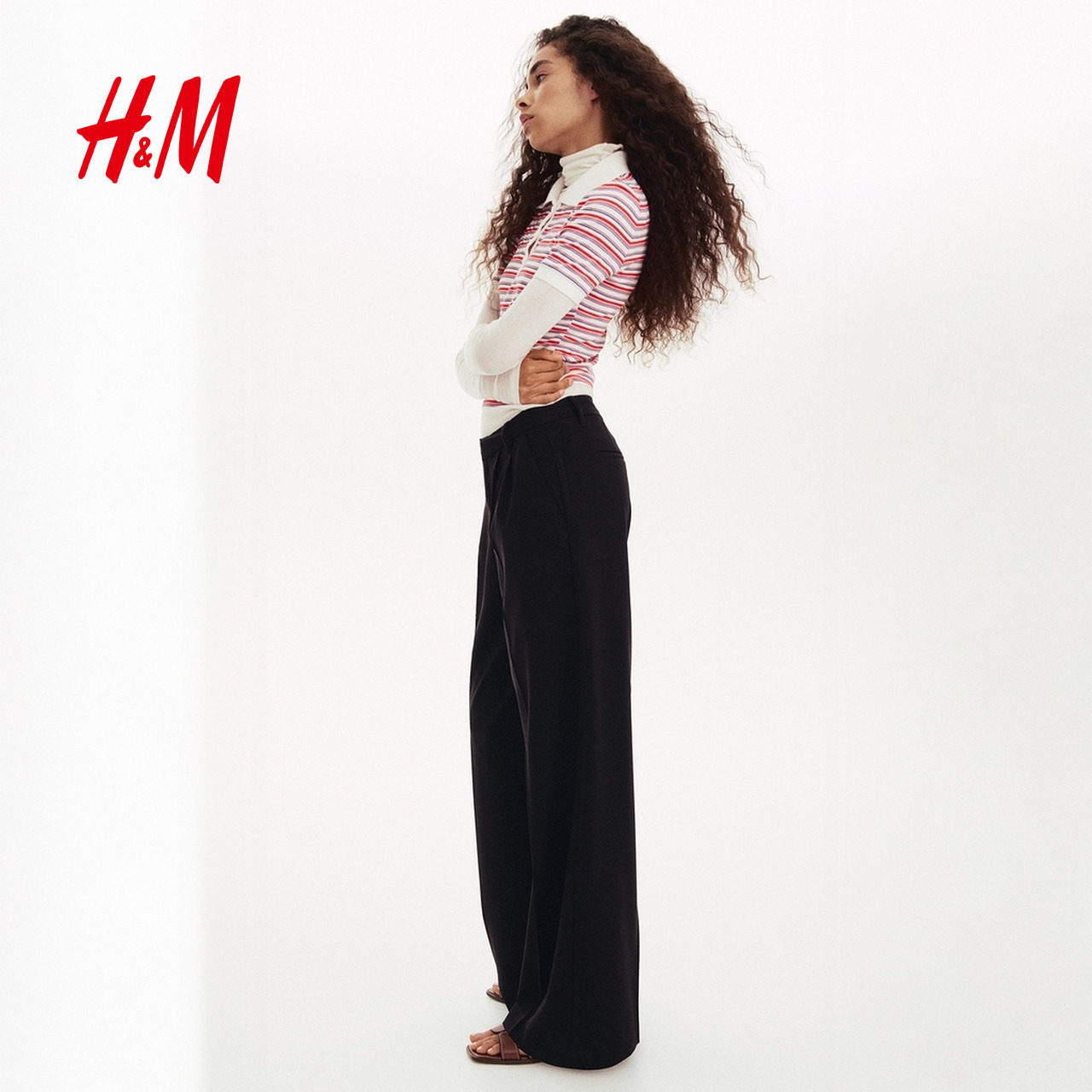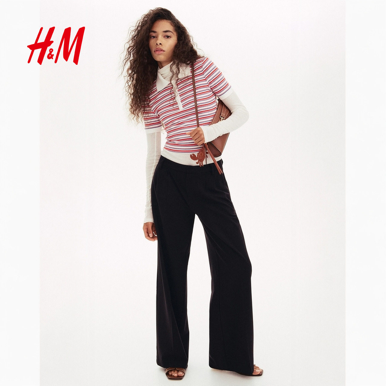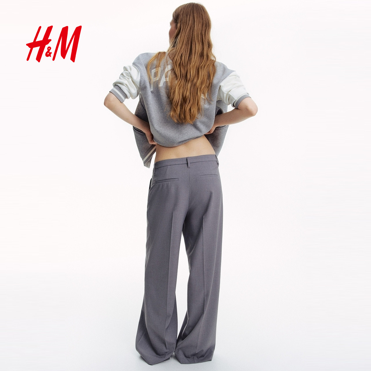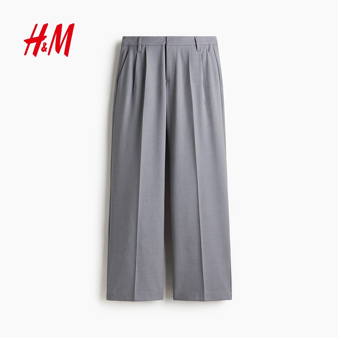 HM女装裤子春季通勤简约时尚柔软潮流阔腿西裤1292768