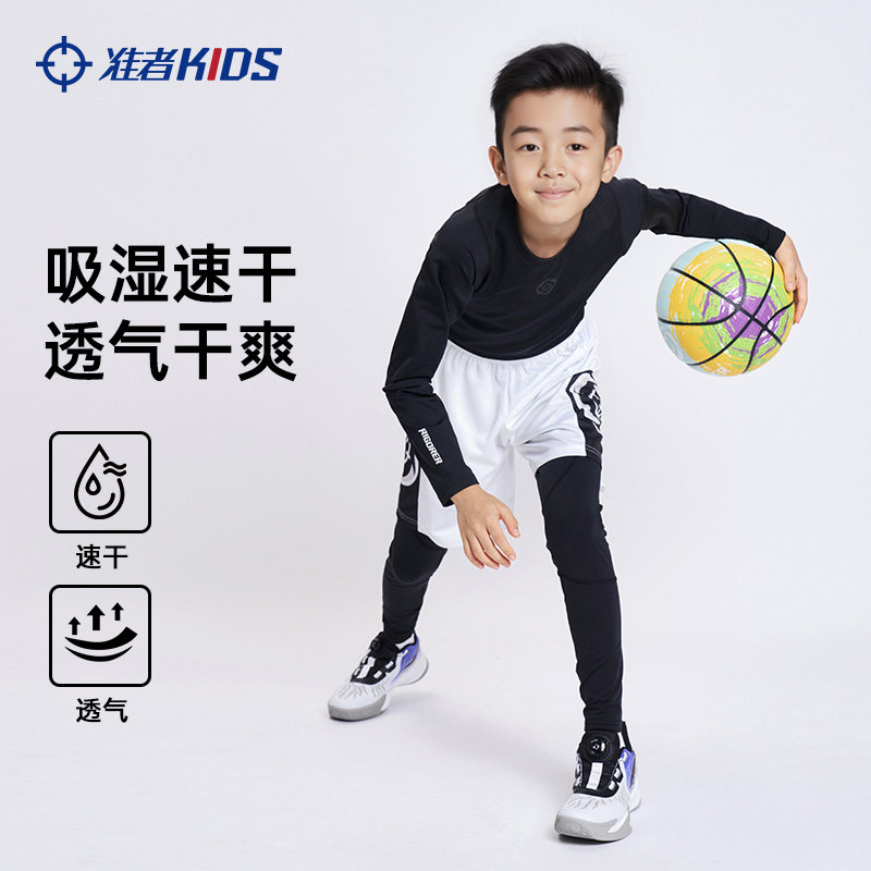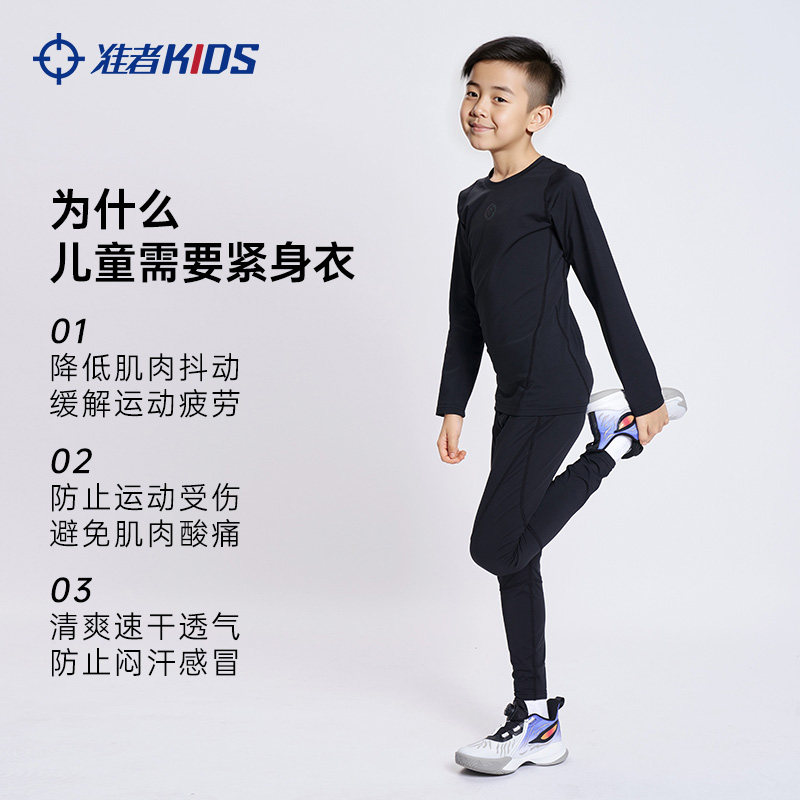 准者儿童篮球紧身衣训练服男童加绒保暖运动套装打底速干衣健身服