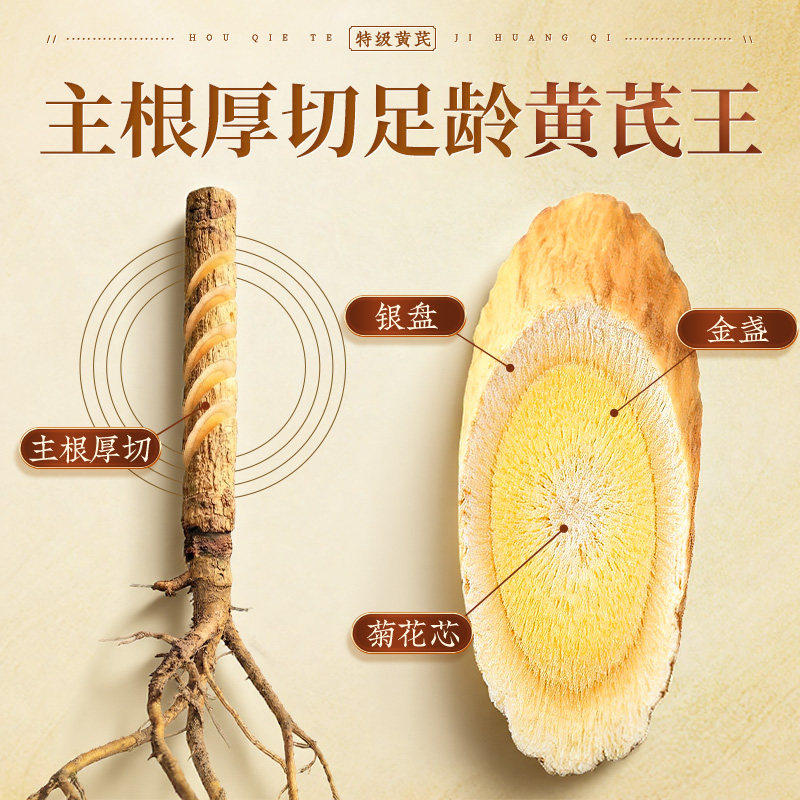 久久春甘肃黄芪200g陇西特级主根黄芪大片野生泡茶泡水煲汤养生茶