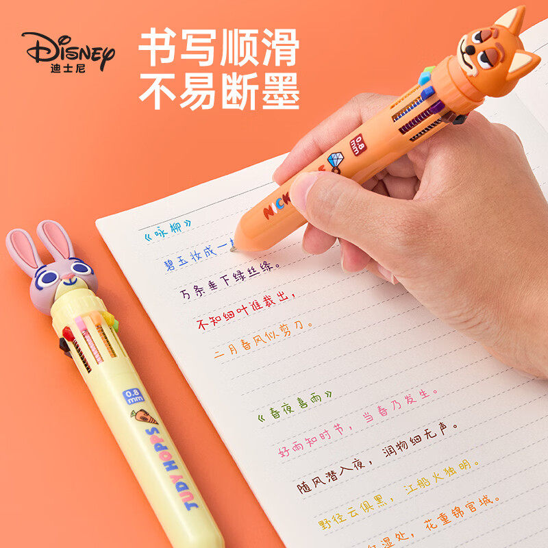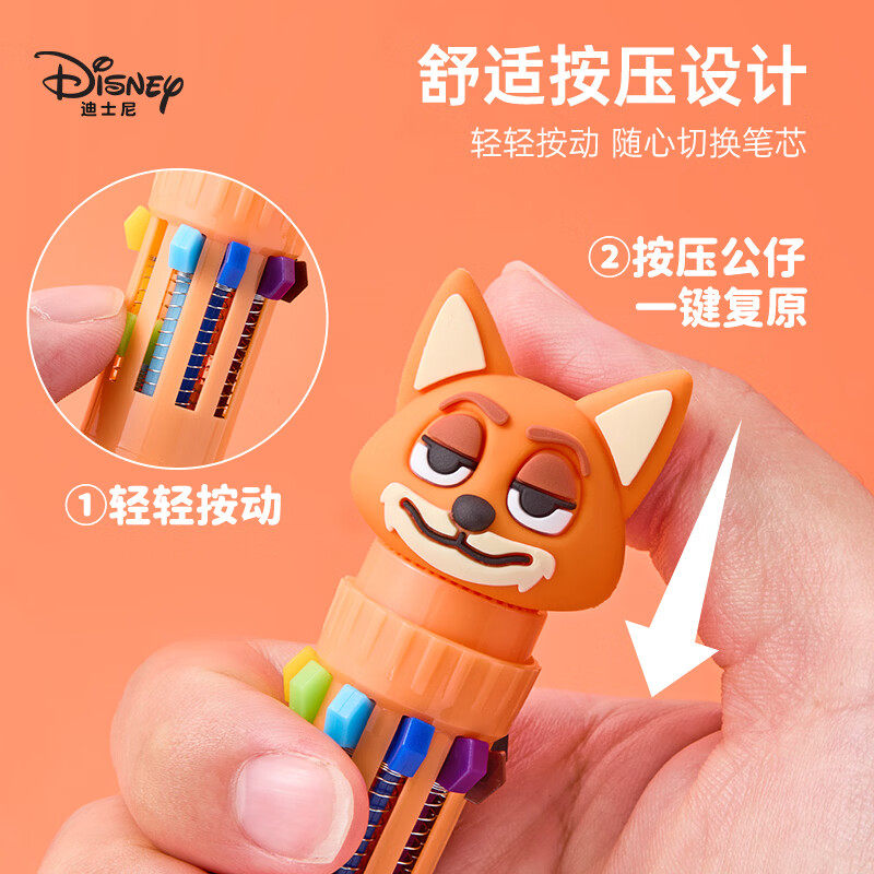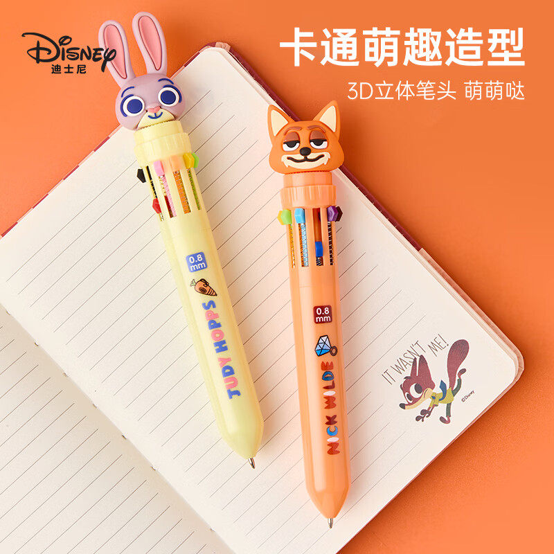 迪士尼疯狂动物城卡通中性笔3D立体公仔十色圆珠笔多色合一记号笔可爱学生按动式书写笔创意手帐儿童礼品奖励