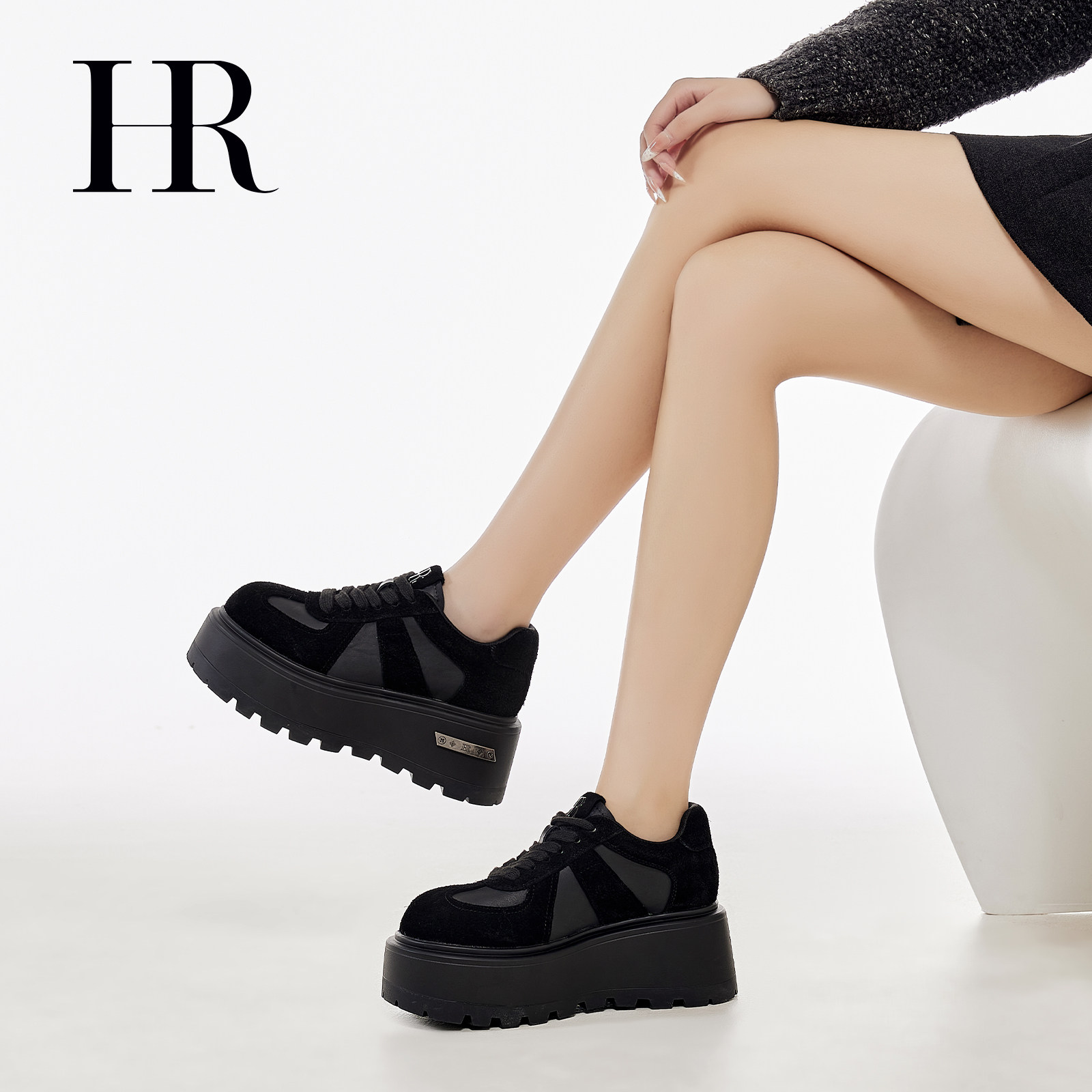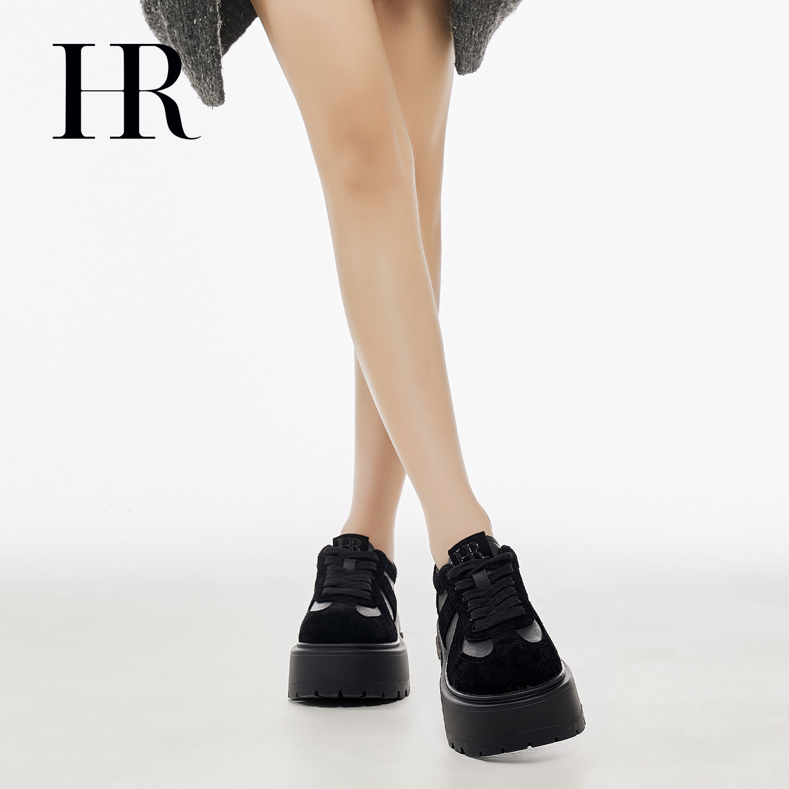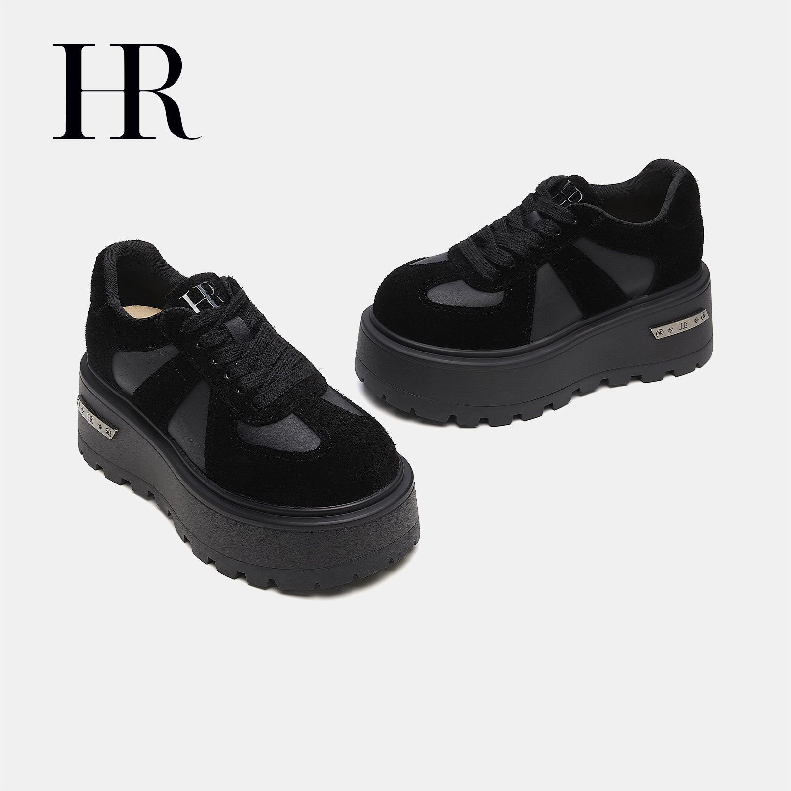 HR赫莲娜板鞋2026年冬季新款德训鞋松糕底复古系带休闲女鞋子增高
