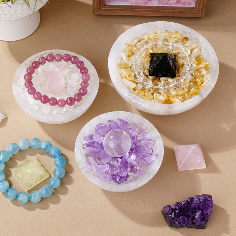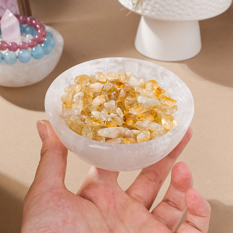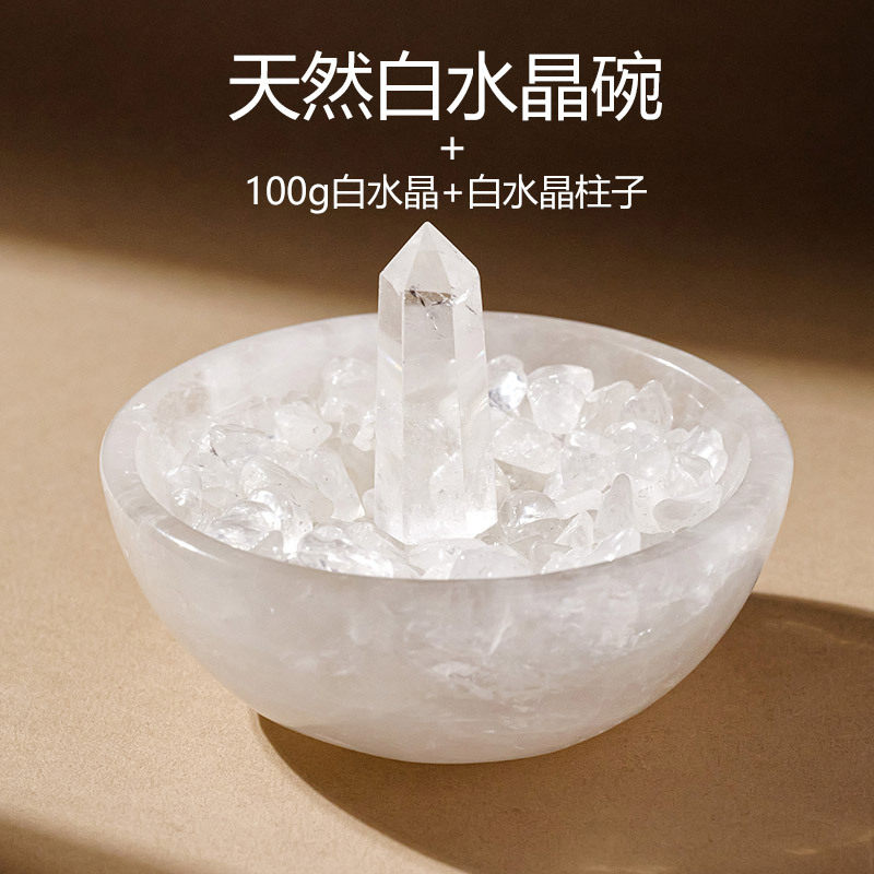 天然白水晶消磁碗首水晶碎石净化水晶碗摆件紫水晶黑曜石水晶柱