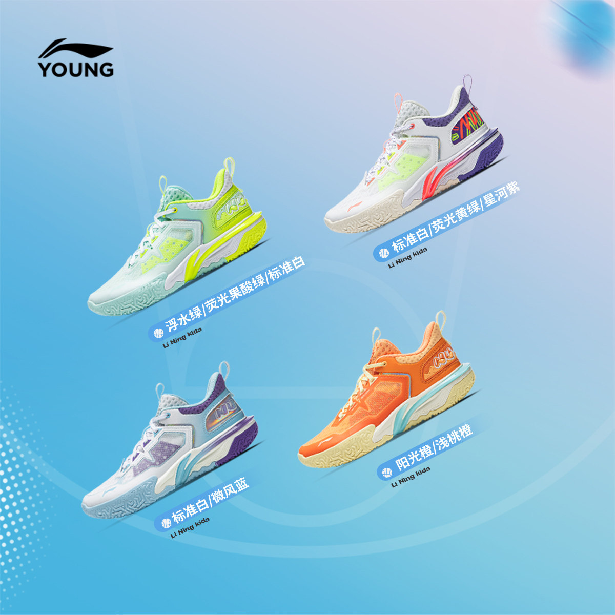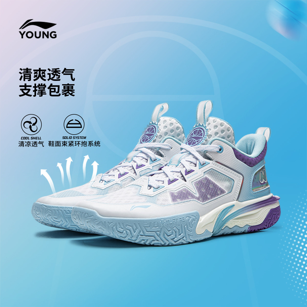 李宁童鞋篮球鞋男大童怒放 夏季版透气清凉圆头青少年中帮童鞋