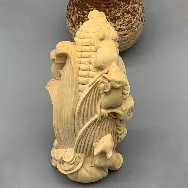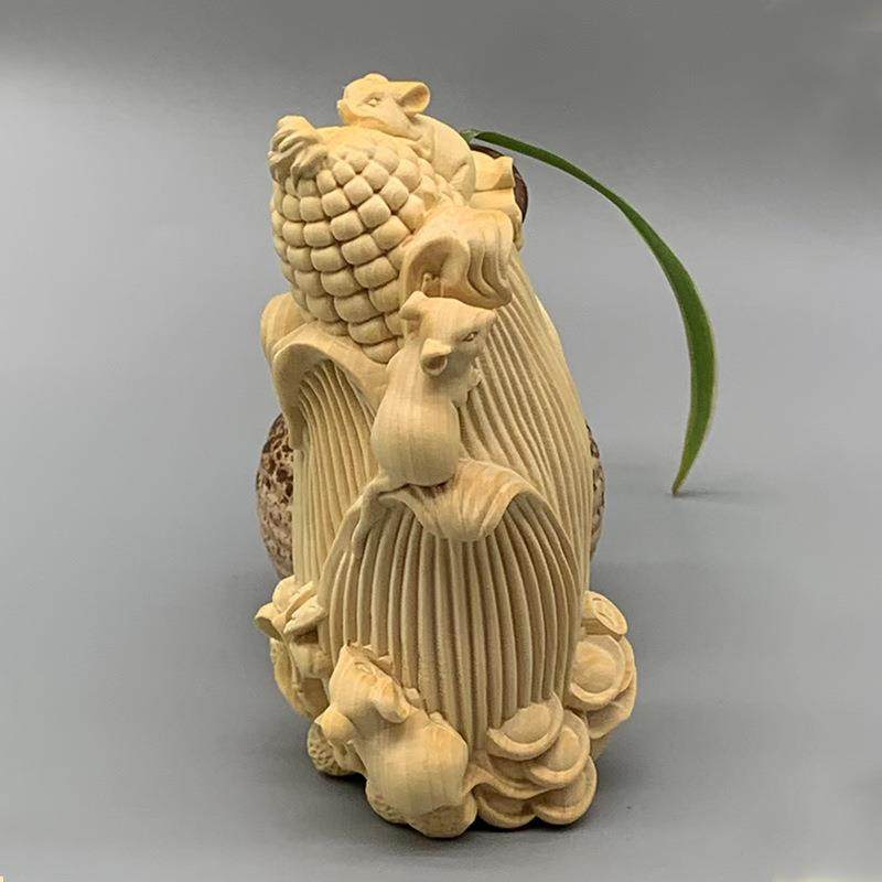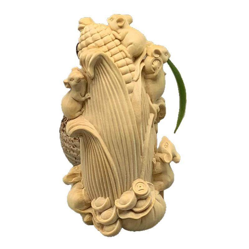 大叶黄杨木雕刻五鼠运玉米款摆件摆饰规格105×60×50家居工艺品