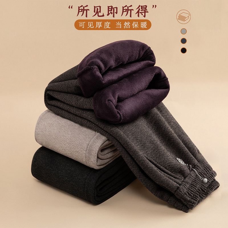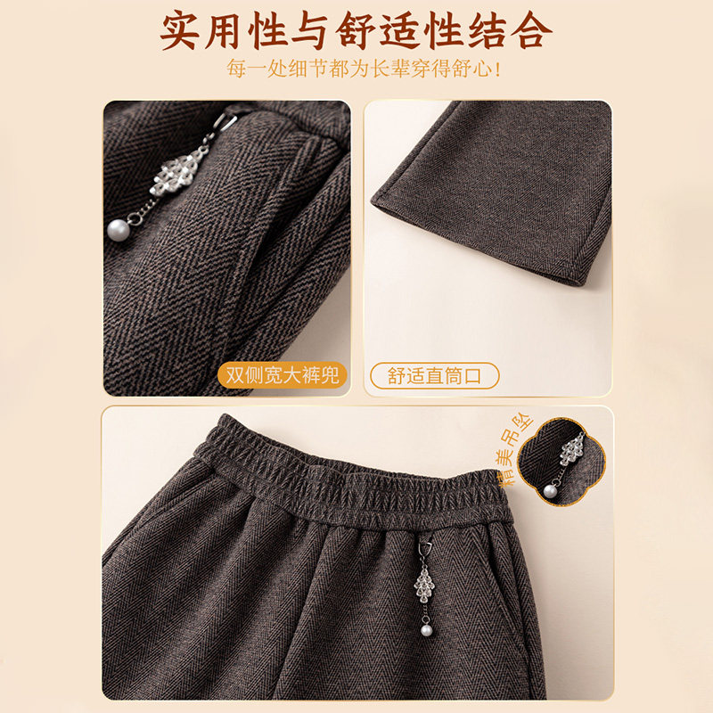 雅鹿奶奶裤子春秋加绒舒适松紧腰老年妈妈老太太宽松时尚休闲女裤
