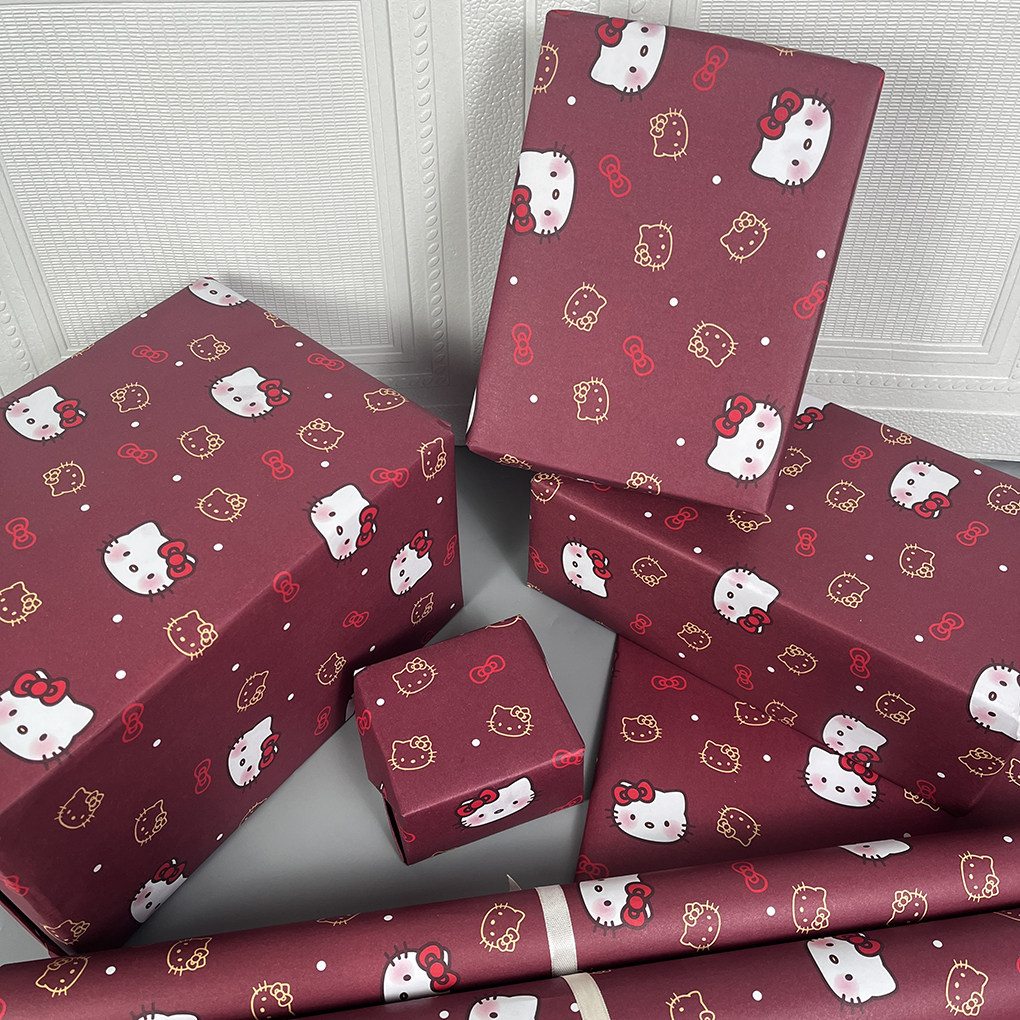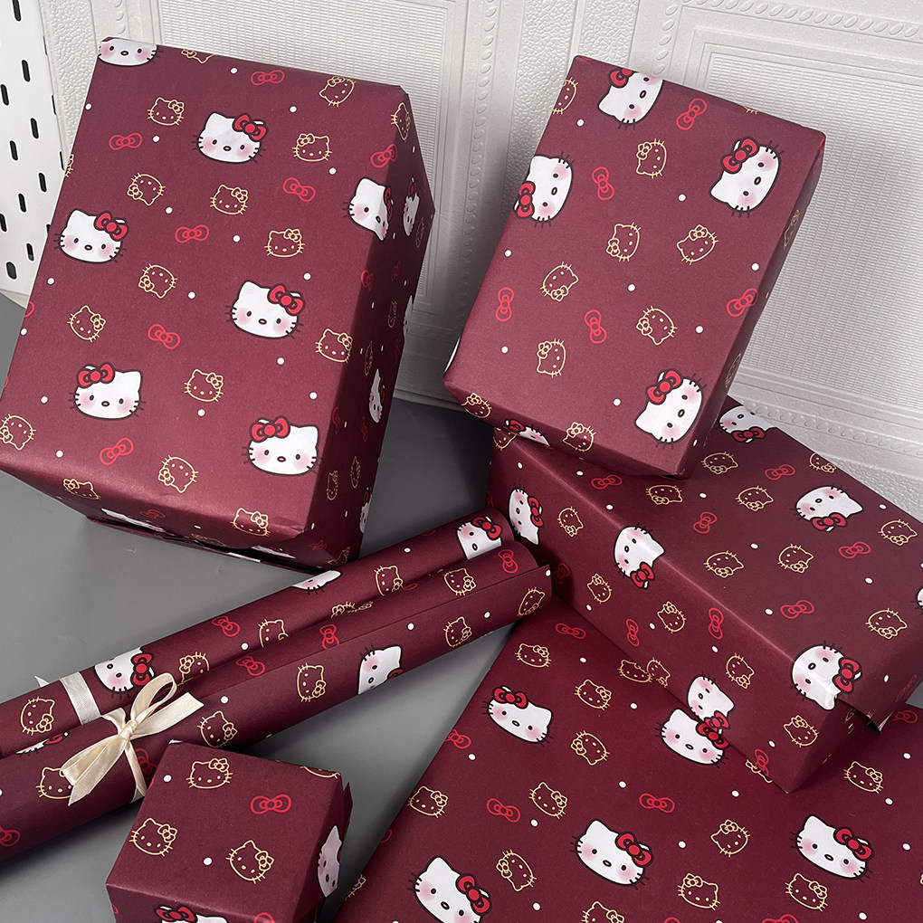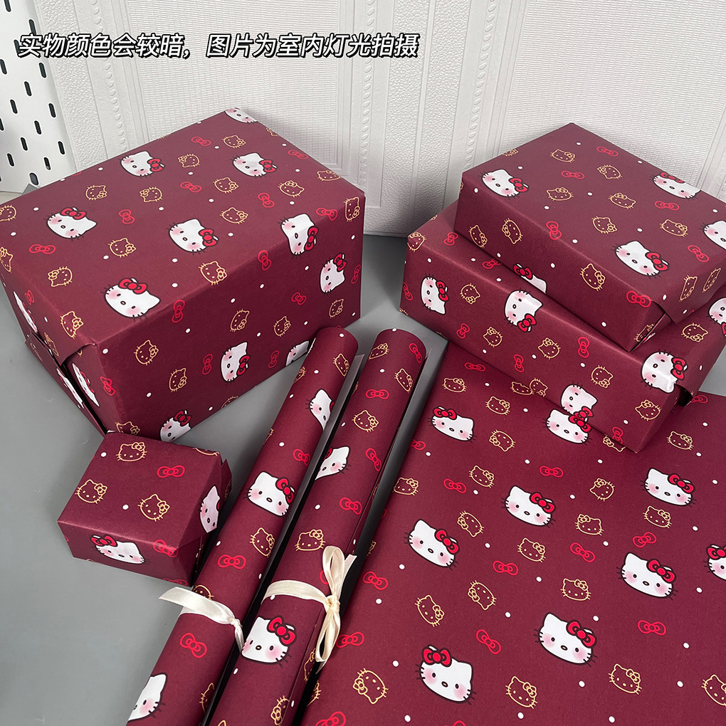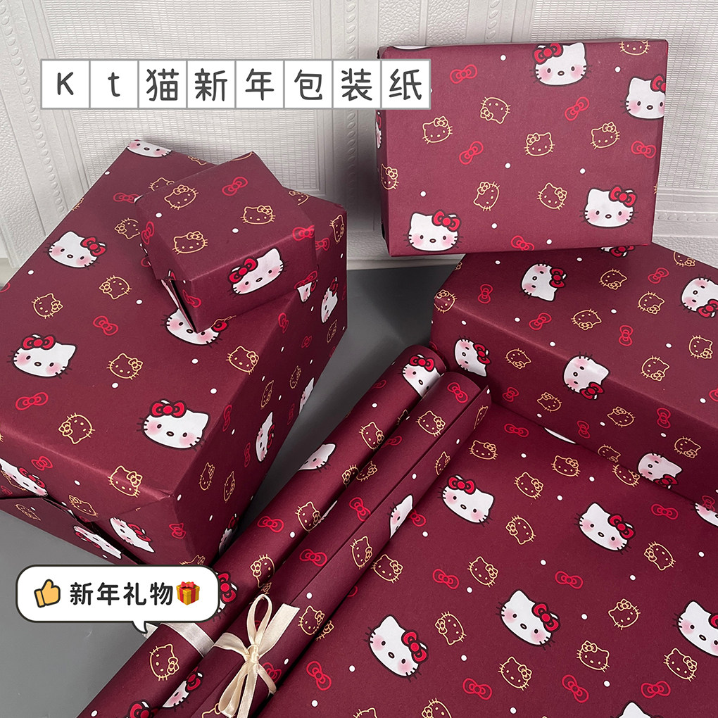新款kt小猫礼物纸红色印花大尺寸可裁剪礼品包装纸高颜值包书纸