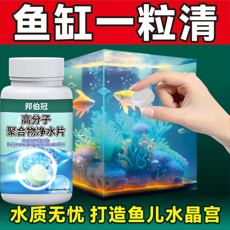 高分子聚合物净水片水族馆同款鱼缸开缸除藻水质净化剂软化盐赭泽