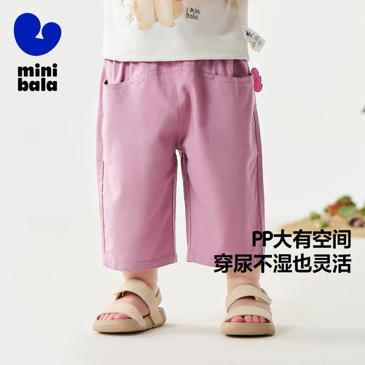 迷你巴拉巴拉男童女童裤子宝宝夏棉感透气柔软宽松锥形裤长裤