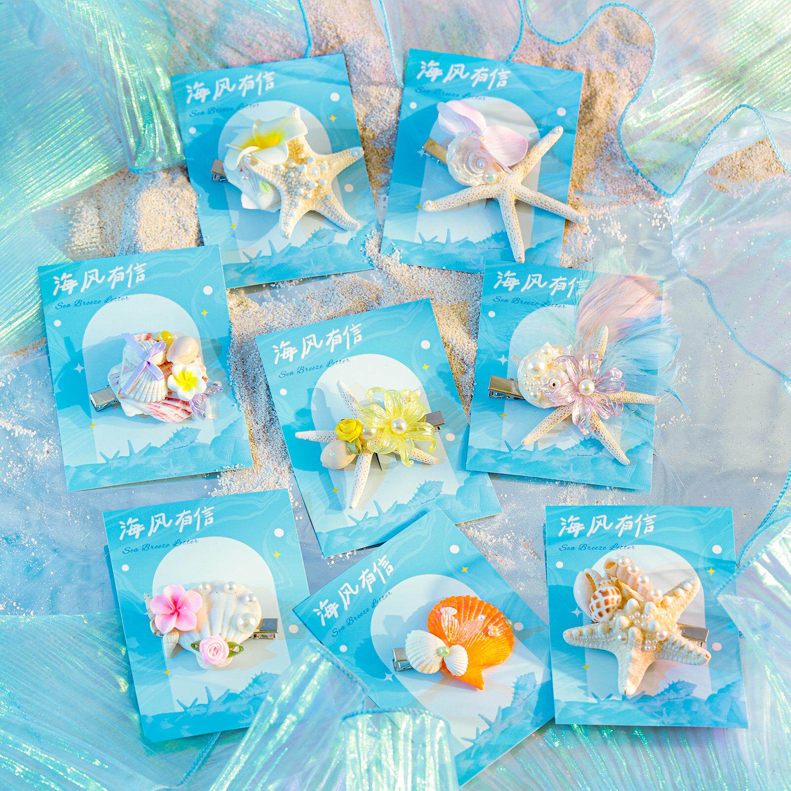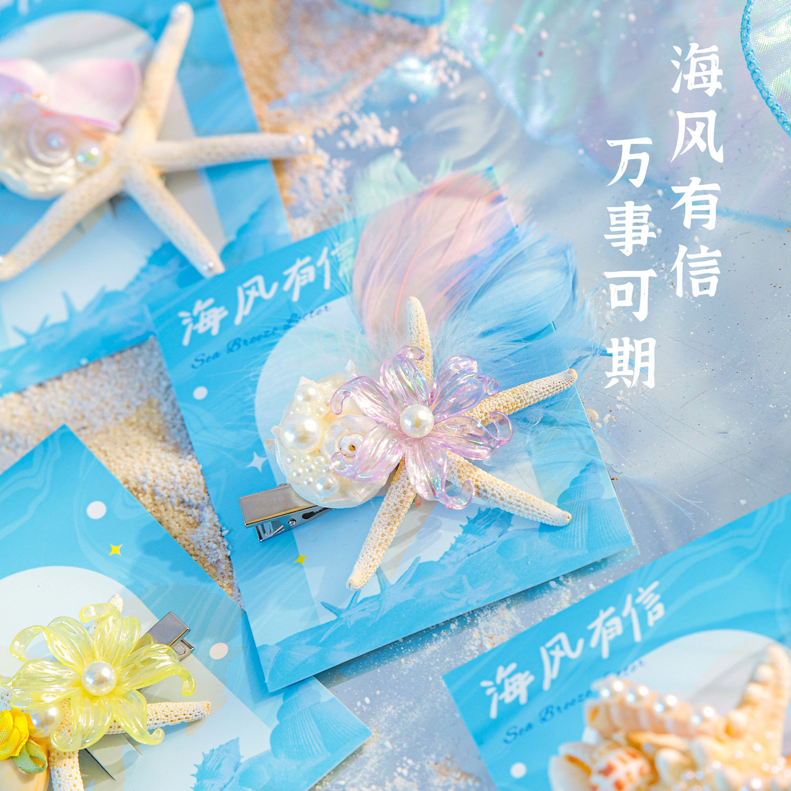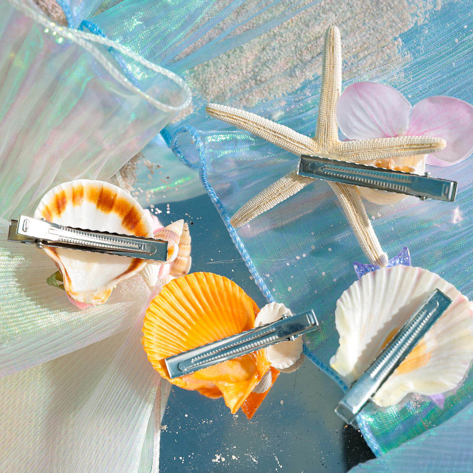 新款海洋系列贝壳海星水母发夹海螺侧边夹卡通碎发夹可爱海星发饰