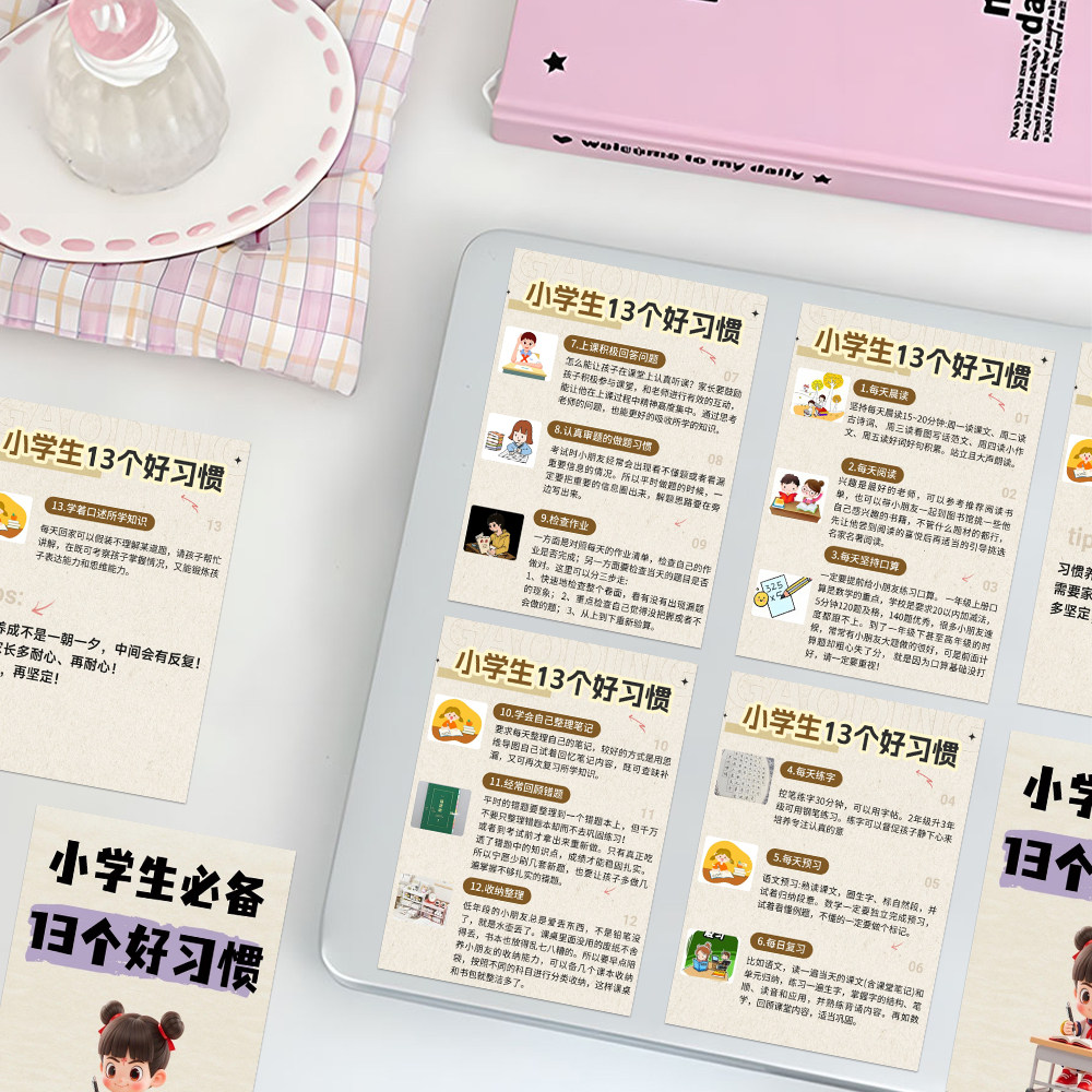 18大张小学生13个好习惯家庭教育培养好习惯育儿干活装饰桌面贴纸