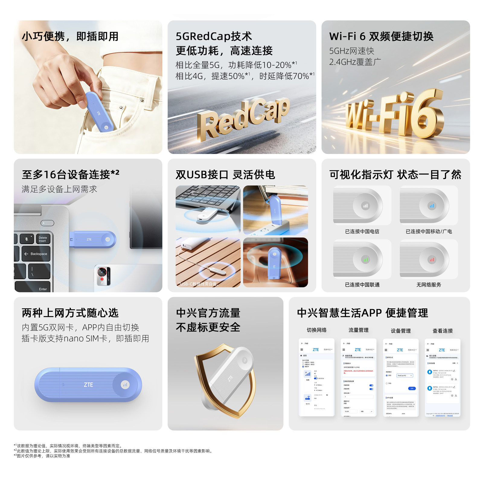 中兴redcap随身wifi/ZTE中兴F40 5GRedCap随身WiFi 精致简约小巧便携5G轻量化RedCap技术官方流量官网旗舰店