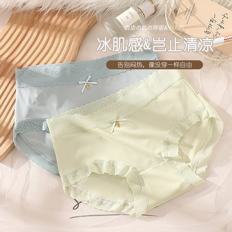 内裤女士2025新款冰丝无痕薄款夏季蕾丝纯棉性感凉感面膜女生短裤