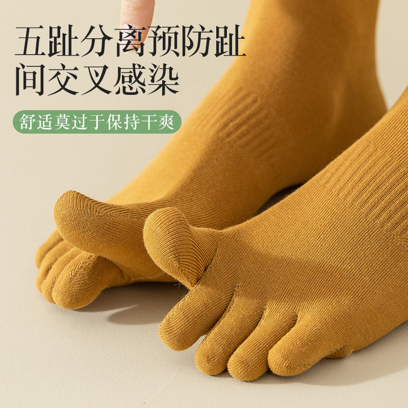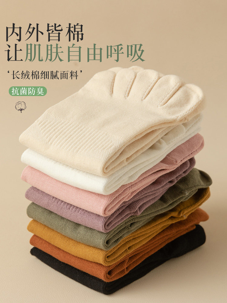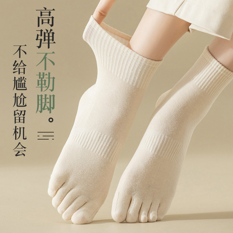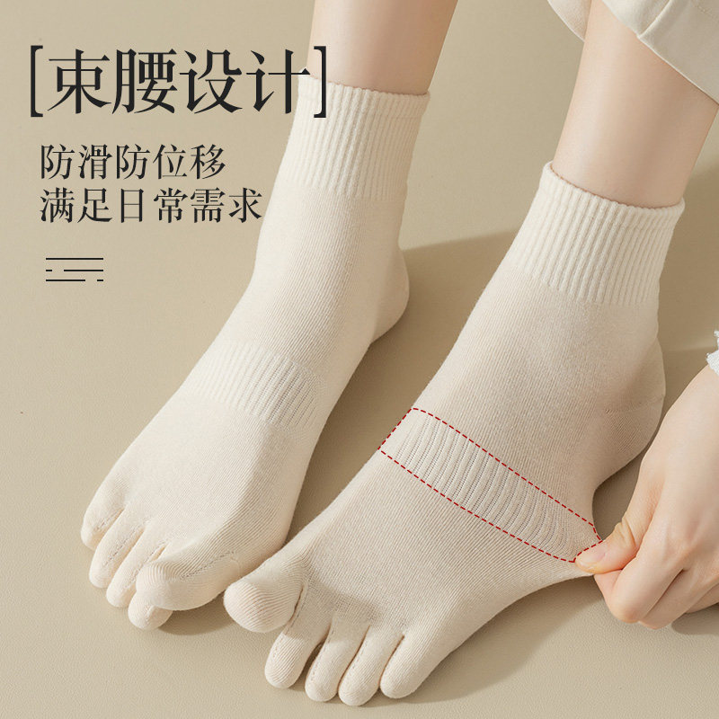 五指袜子女士纯棉中筒防臭防脚气吸汗抗菌分趾袜春夏全棉无骨长袜