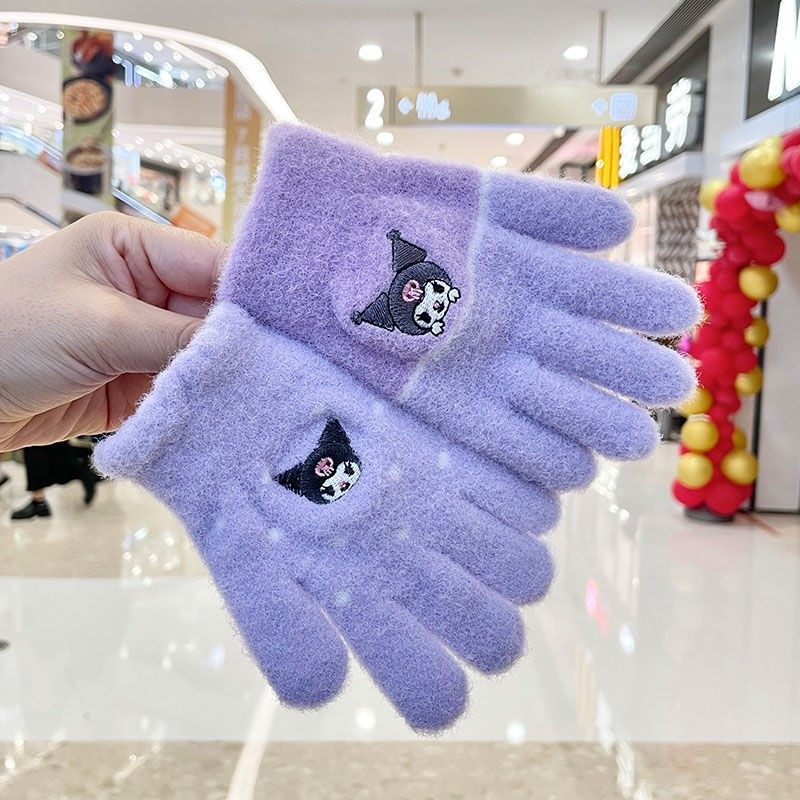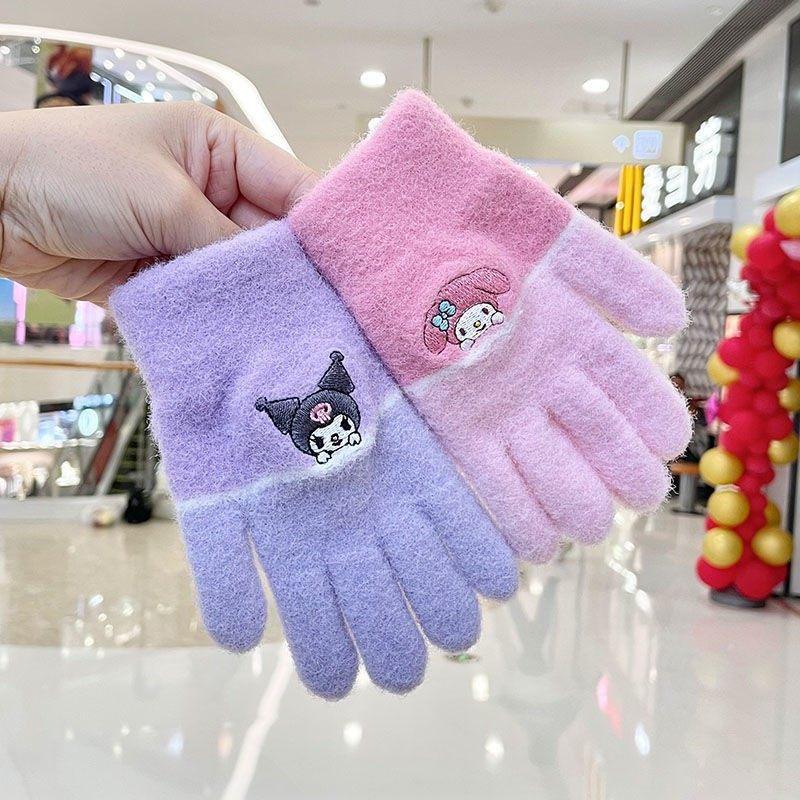 4-9岁儿童库洛米手套宝宝女童加厚保暖分指套秋冬女孩毛绒五指套