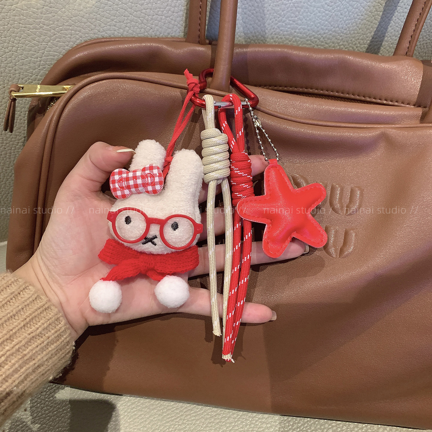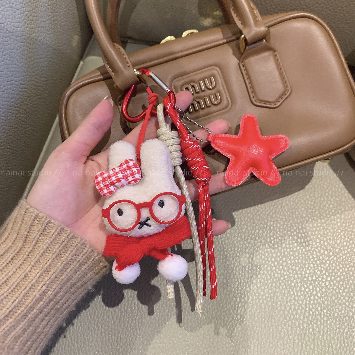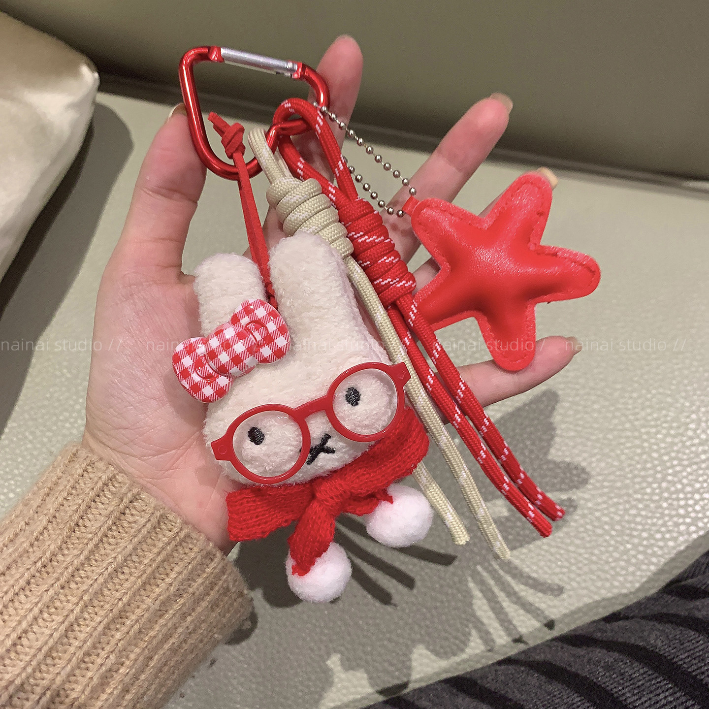 可爱米菲挂件~红色圣诞节包包挂饰眼镜兔子星星毛绒卡通车钥匙扣