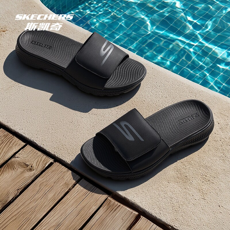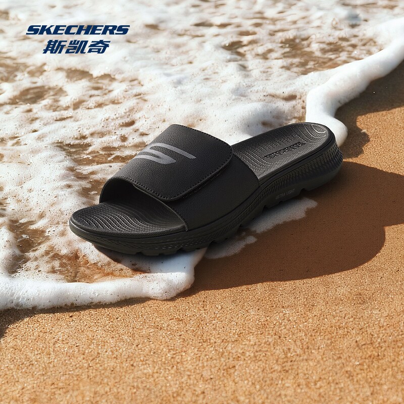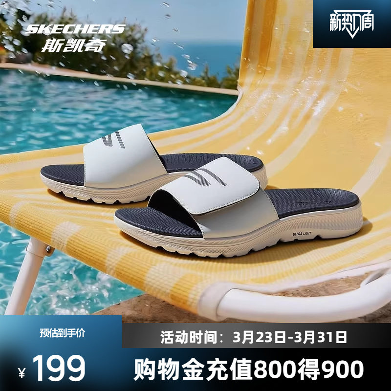 斯凯奇男士休闲凉鞋2026夏季新款革面户外休闲风轻量缓震一字拖