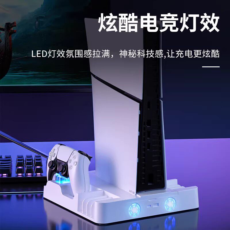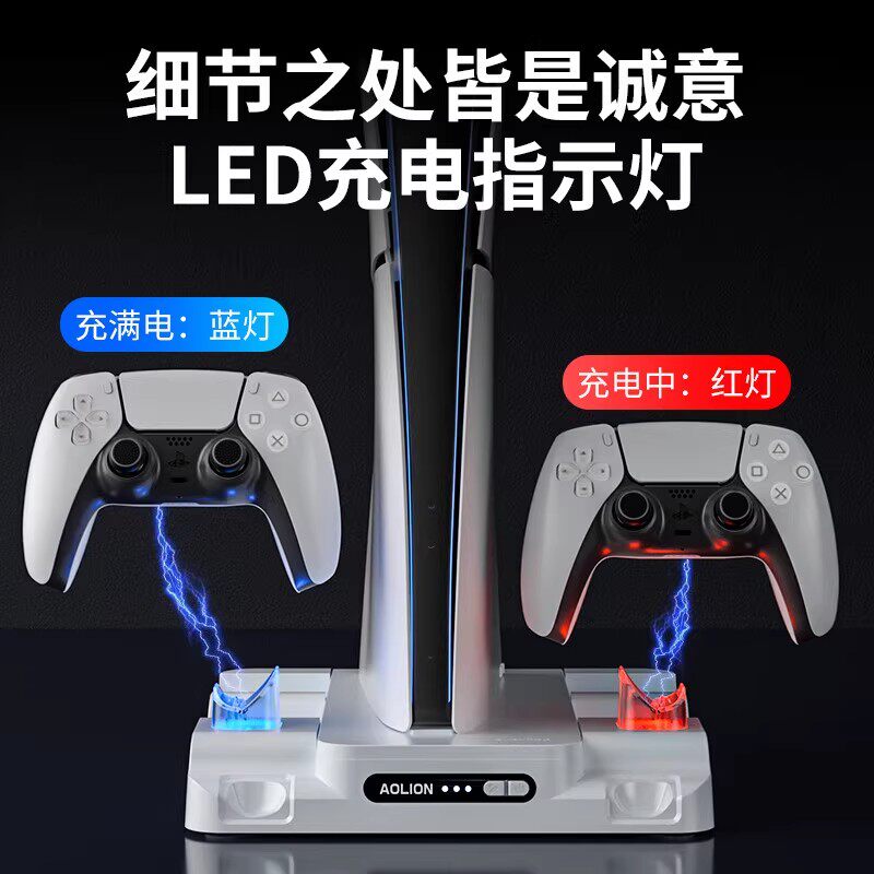 【自营】澳加狮索尼PS5散热底座Slim主机散热风扇PS5 Pro直立支架光驱数字版手柄座充充电耳机手柄收纳架配件