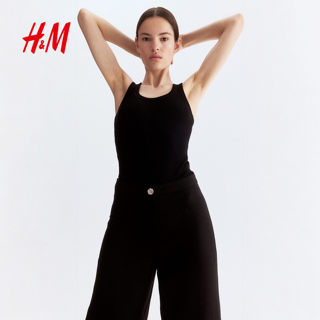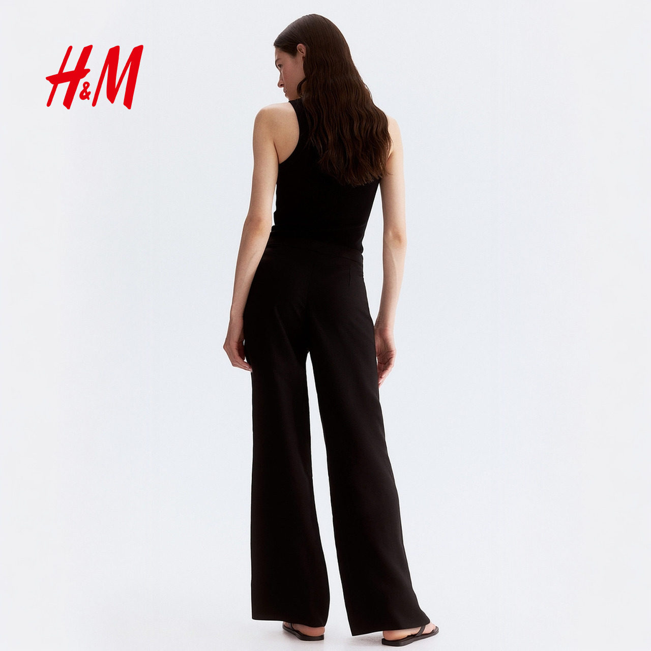 HM女装裤子春季通勤亚麻混纺长裤时尚休闲西装裤1259101