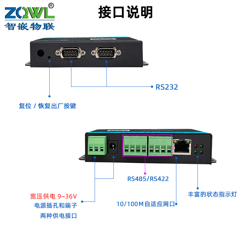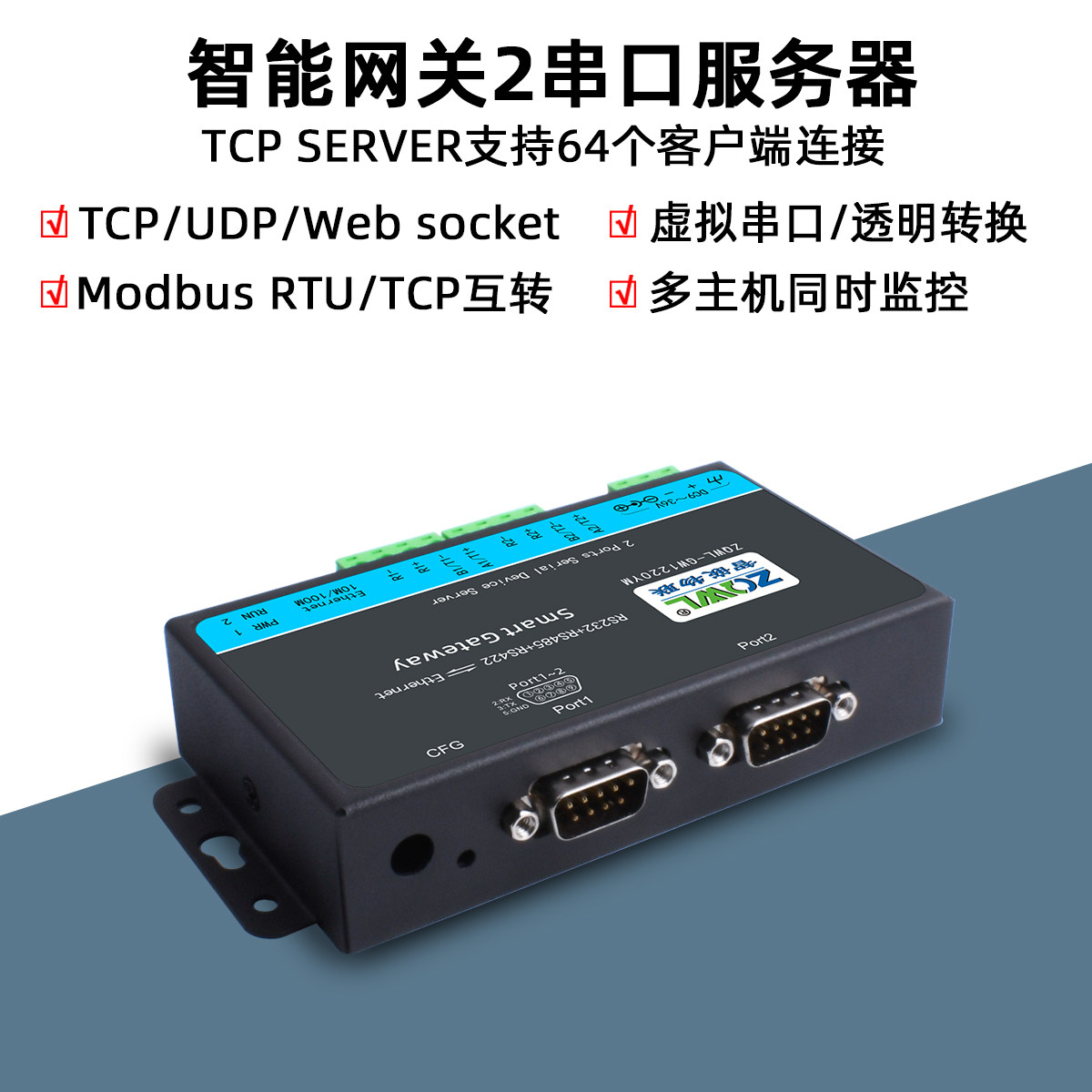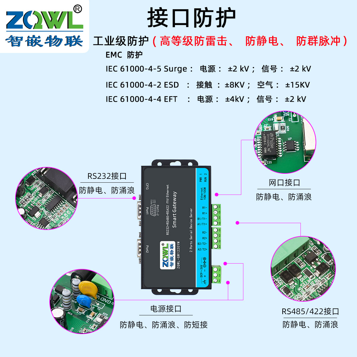 【智嵌物联】2路RS232/422/485转以太网模块串口转网口Modbus网关MQTT主动轮询