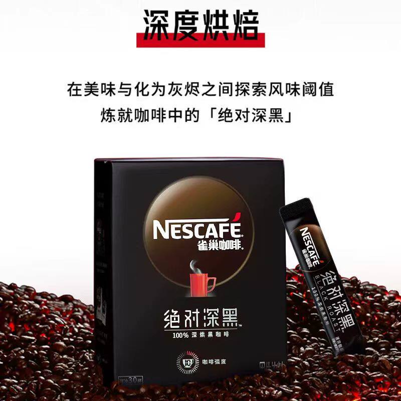 雀巢绝对深黑咖啡30条盒装95%深度烘焙即溶美式浓郁提神速溶黑咖