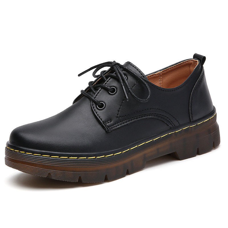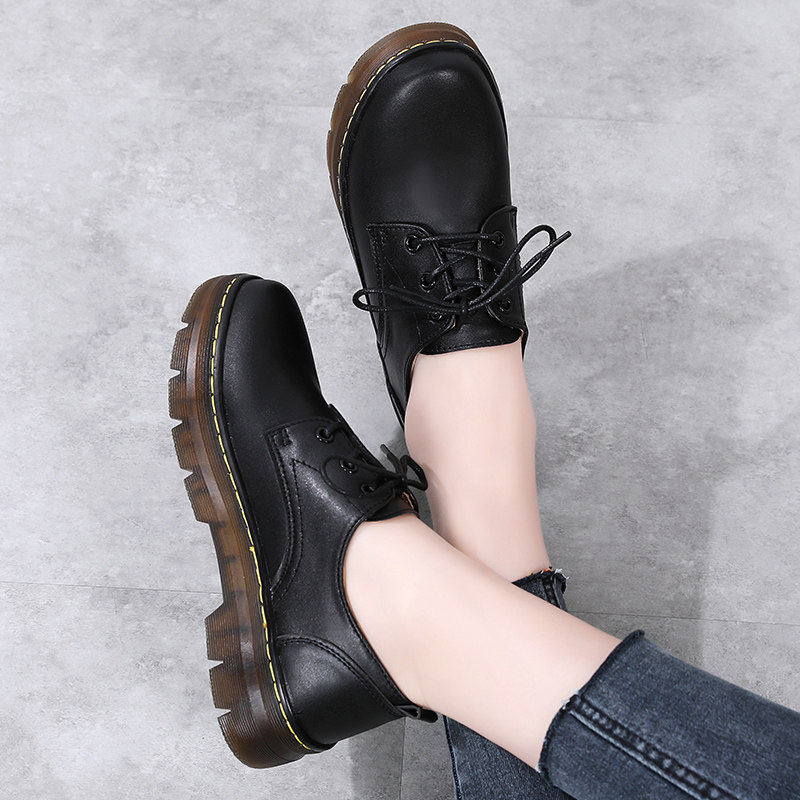 欧伦啄木鸟真皮英伦风女鞋 厚底圆头休闲鞋 软底防滑单鞋 延足品
