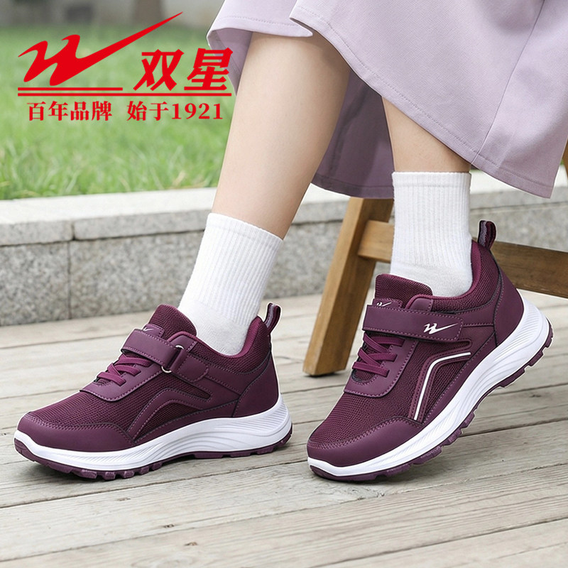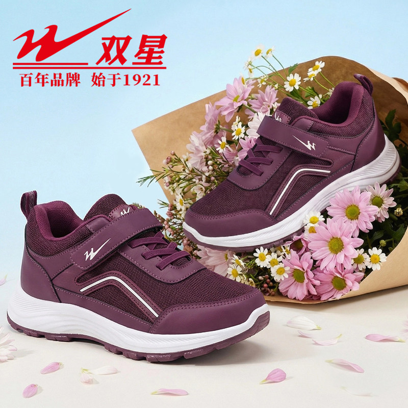 双星春秋休闲新款平跟健步鞋中老年防滑老人鞋运动舒适软底妈妈鞋