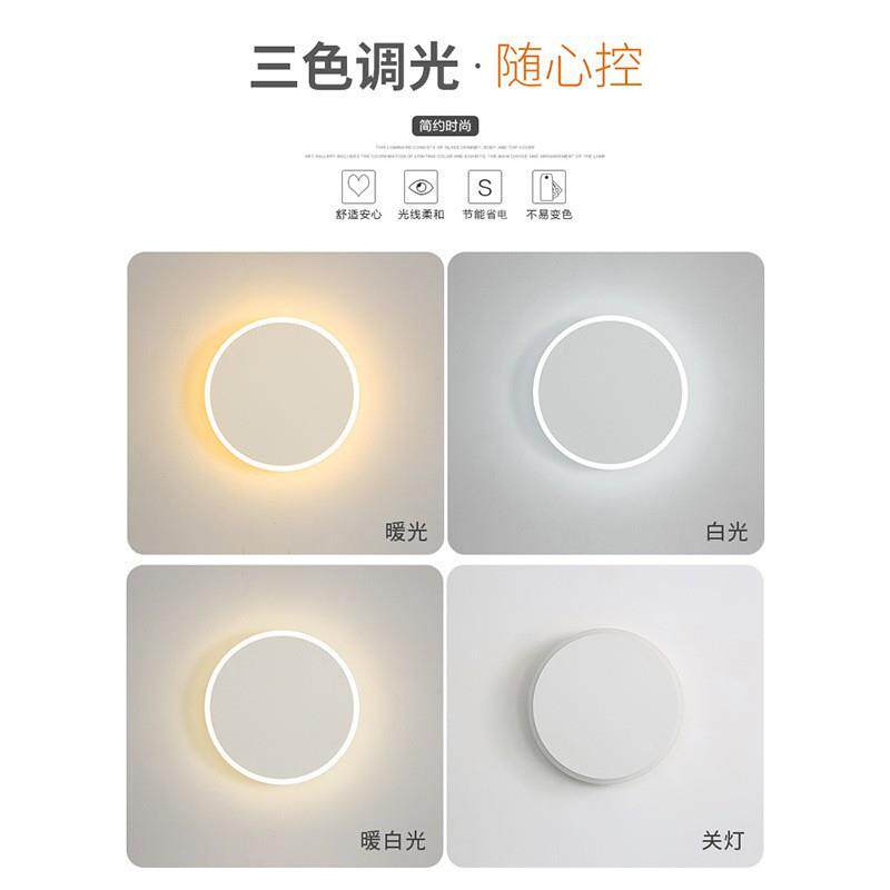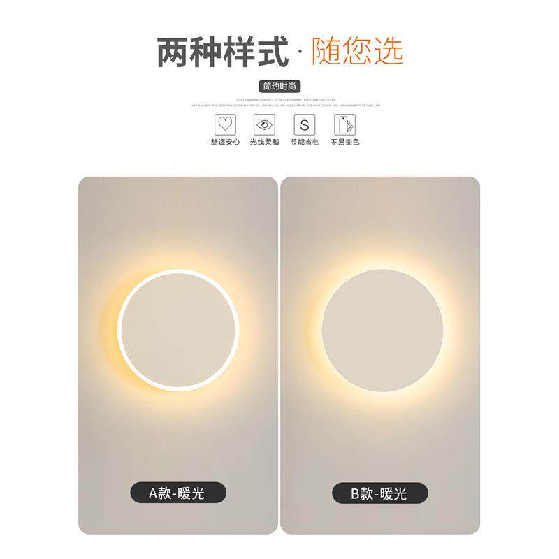 简约壁灯led床头灯现代北欧圆形温馨主卧室灯具创意客厅灯背景灯