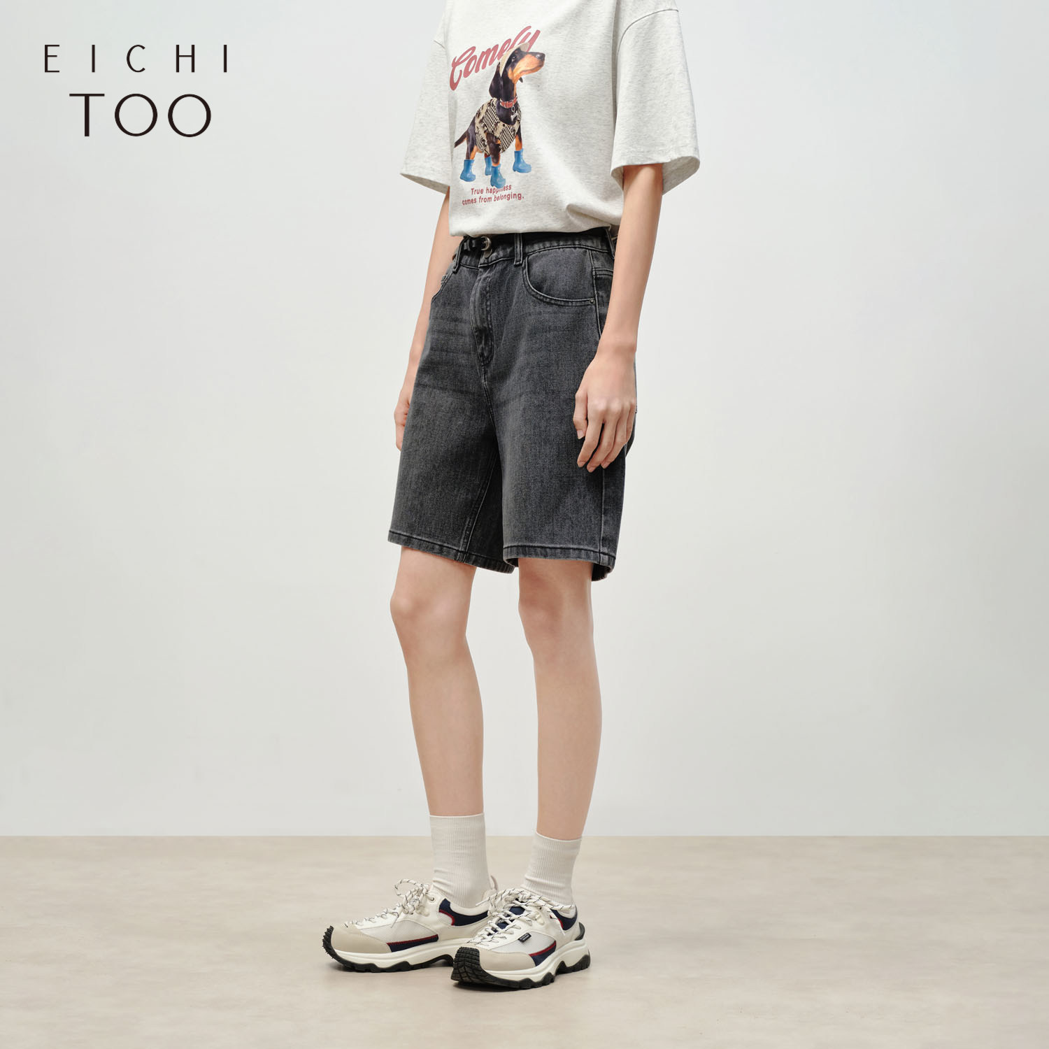 爱居兔黑灰色牛仔短裤女夏季新款时尚高腰显瘦辣妹a字短裤