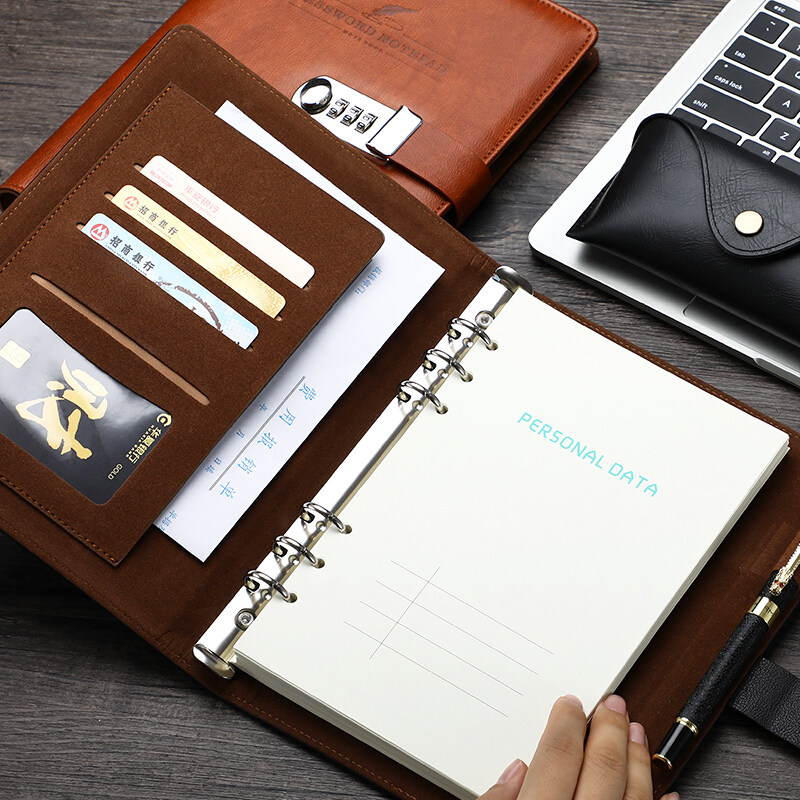 密码锁笔记本子a5可拆卸活页本带锁密码本商务记事本简约笔记本文具加厚创意日记本可替换内页手账本定制logo