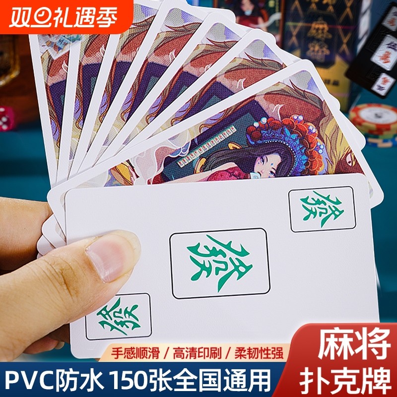 纸牌麻将扑克牌家用便携pvc塑料防水加厚磨砂耐用旅行宿舍麻将牌