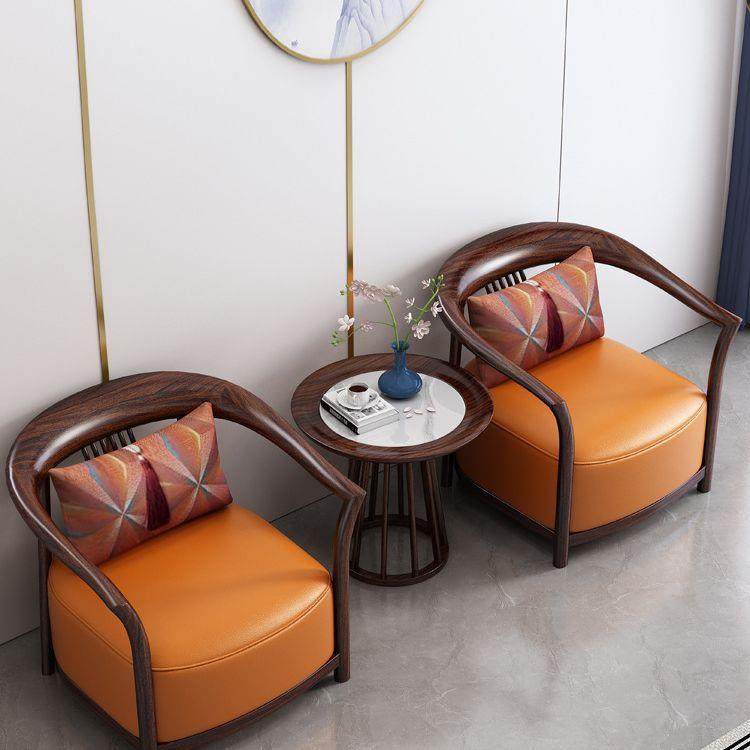 新中式乌金木休闲椅简约圈椅三件套家用客厅轻奢全实木茶桌沙发椅