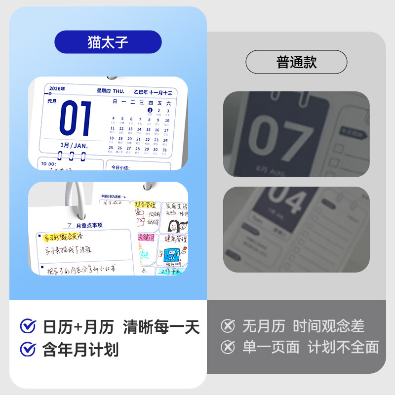 猫太子2026年新款计划日历学生元旦新年礼物礼物台历记事本学习计划表桌面摆件每日一撕自律打卡倒计时计划本