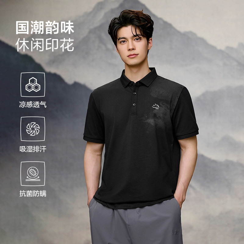 HLA/海澜之家山不在高短袖POLO衫26春夏新凉感吸湿排汗印花T恤男
