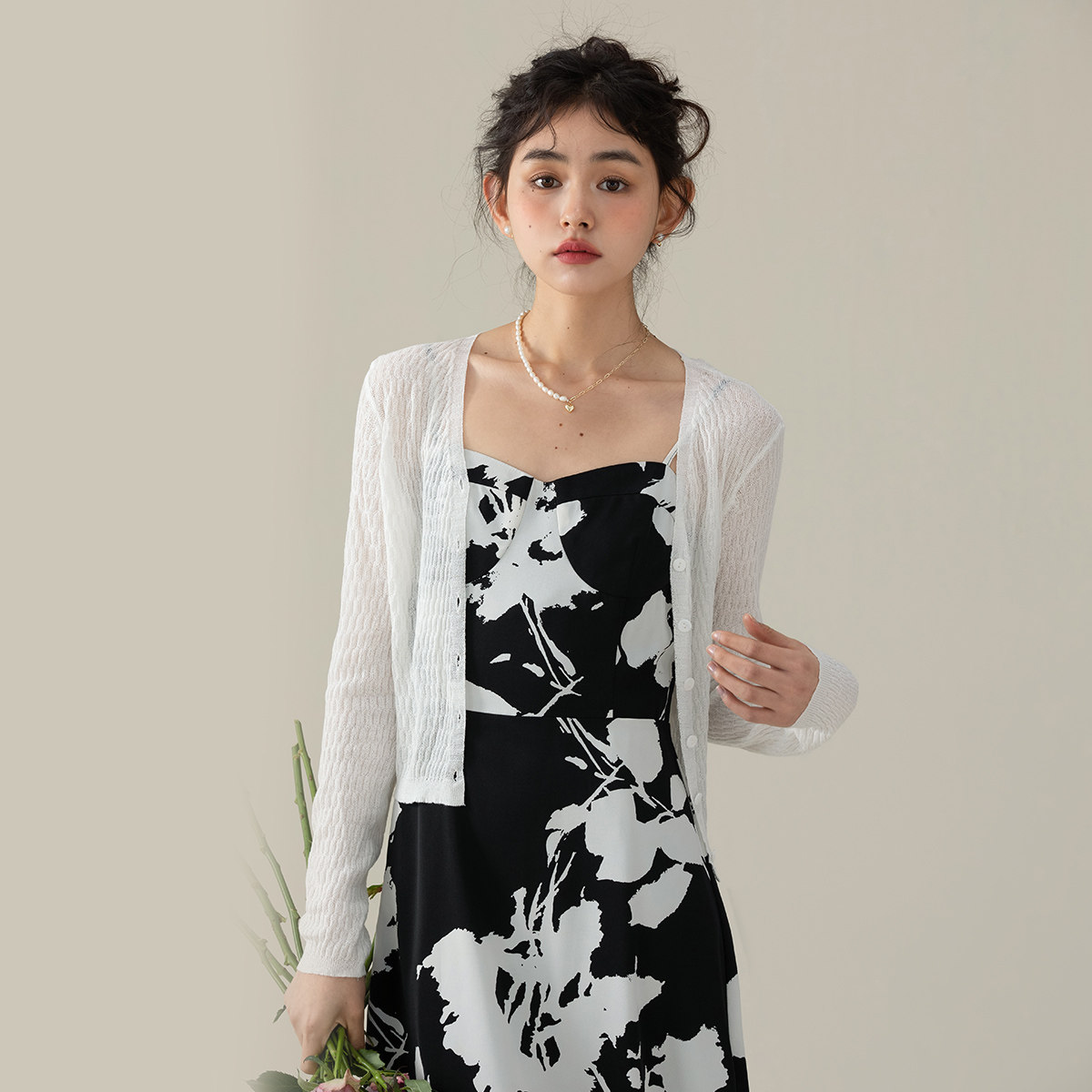 one more【2025夏季】冰丝开衫女长袖外套针织衫披肩外搭罩衫上衣