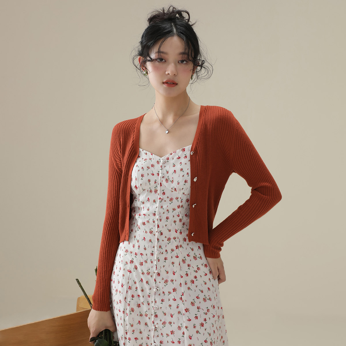 one more冰丝针织开衫外套女披肩短款物理外搭防晒罩衫气质上衣