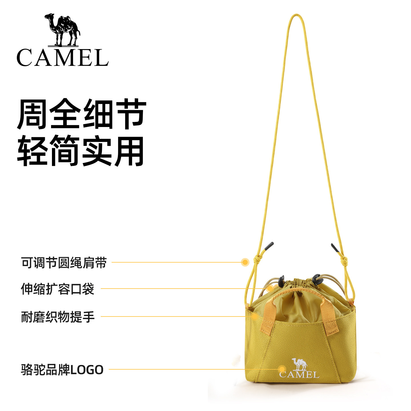 骆驼单肩饺子包通勤斜挎包肩带可调节大容量轻量化轻巧男女背包