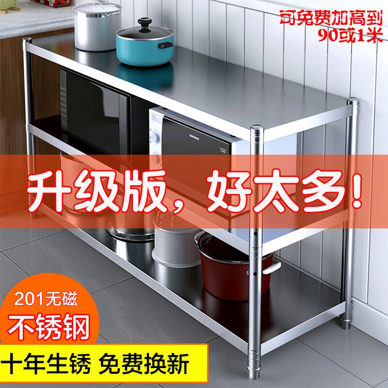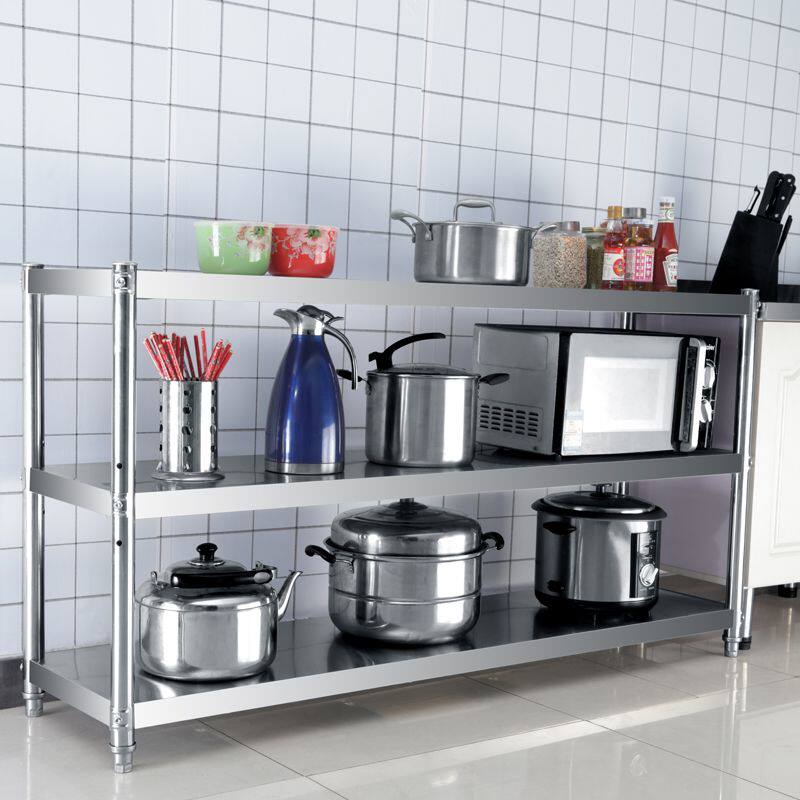 不锈钢厨房置物架落地三层锅架四层微波炉架储物收纳架多层货架子