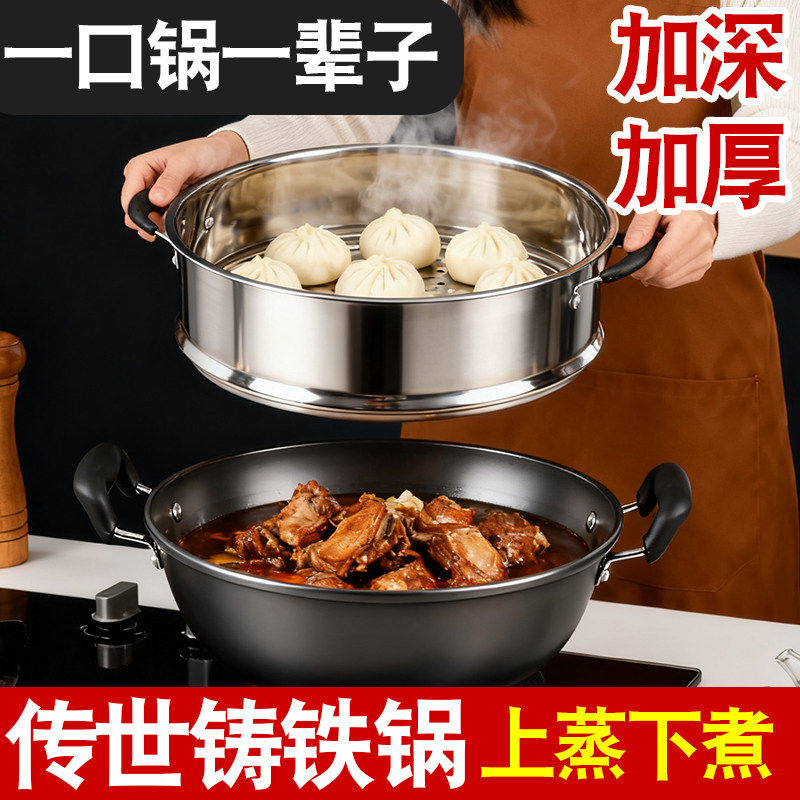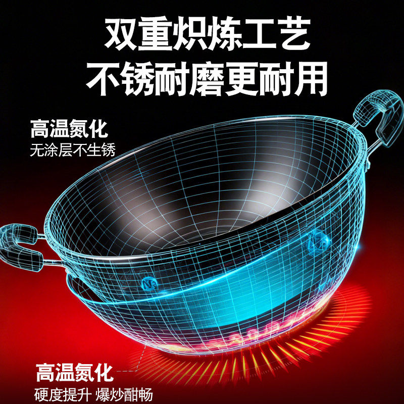 铁锅官方旗舰炒菜锅老式炒锅铁锅家用不粘锅无涂层燃气灶适用