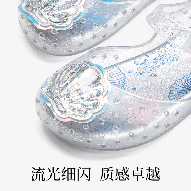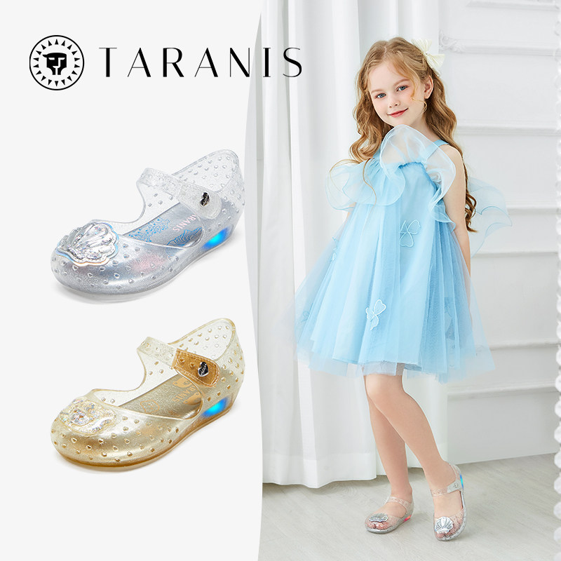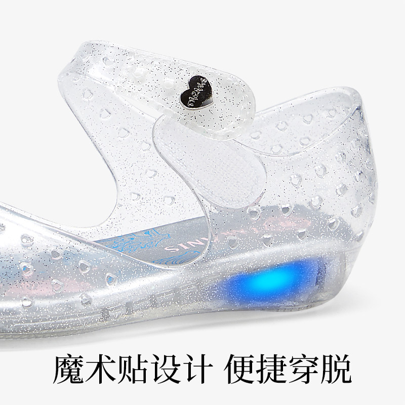 泰兰尼斯童鞋夏季新款水晶公主鞋女童凉鞋儿童闪灯鞋包头果冻鞋子