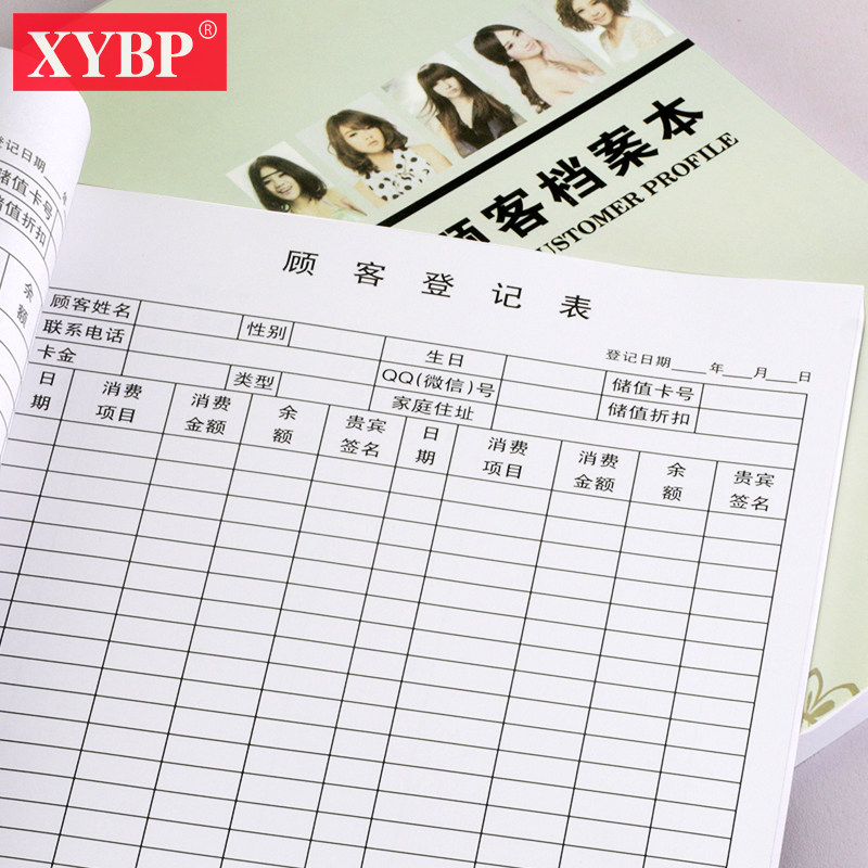 XYBP顾客档案本美容院信息资料册加厚A4美甲美睫会员登记本通用VIP贵宾卡理发店会员卡本客户消费记录本定制