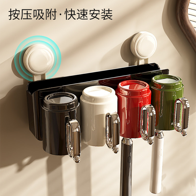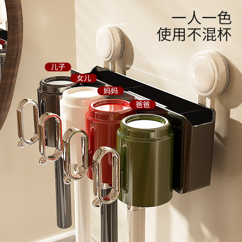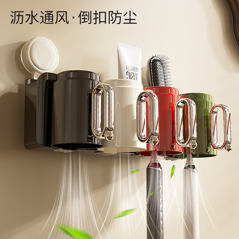 吸盘牙刷置物架壁挂式牙膏收纳架家用卫生间家庭漱口杯子沥水挂架