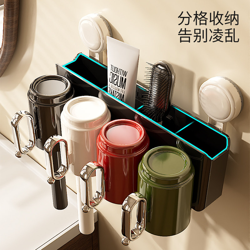 卫生间牙刷置物架电动吹风机支架家庭洗漱台壁挂式漱口杯牙具架子